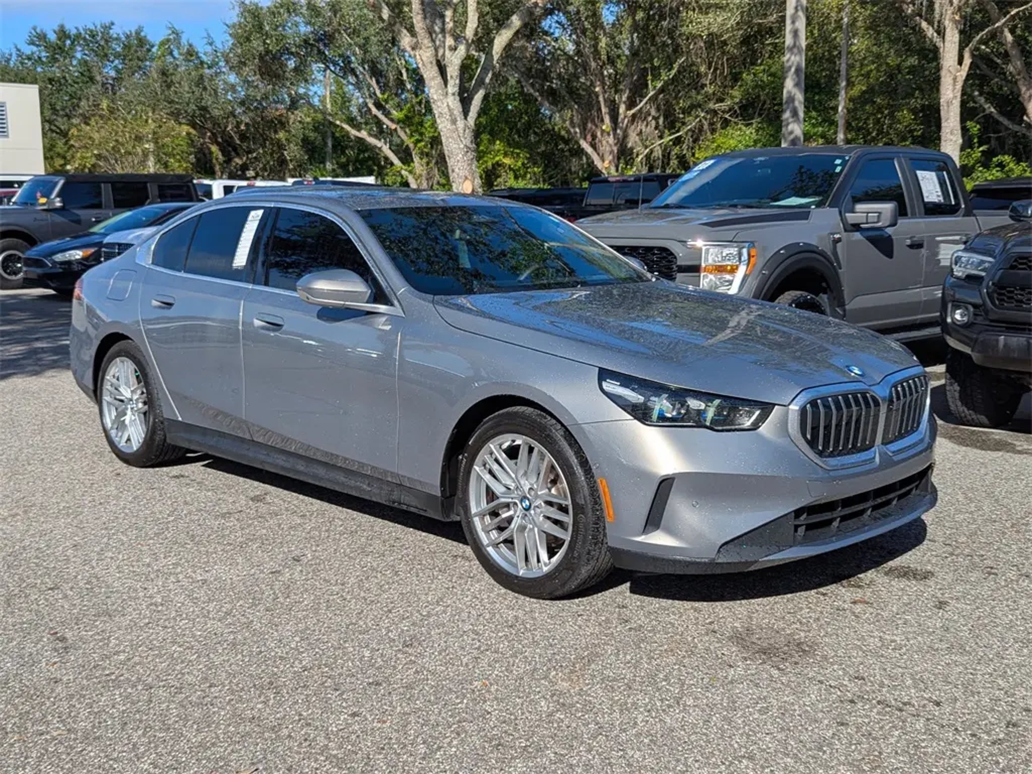The pinnacle of modern sport luxury sedan design, this Blue Certified 2025 BMW 530i xDrive combines dynamic performance with refined craftsmanship and next-generation technology. Finished in elegant Oxide Gray Metallic with a Black Perforated Veganza interior, this low-mileage 530i delivers the effortless confidence of xDrive all-wheel drive, a powerful turbocharged engine, and a suite of premium comfort and safety features"”ideal for discerning Tampa Bay drivers seeking luxury and agility in one sophisticated package. Power comes from a 2.0L BMW TwinPower Turbo inline 4-cylinder engine paired with an 8-speed STEPTRONIC automatic transmission with paddle shifters. This advanced powertrain provides smooth, responsive acceleration while maximizing efficiency, achieving an EPA-estimated 35 MPG highway. Full-time xDrive all-wheel drive, an adaptive double-wishbone front suspension, and multi-link rear suspension provide sharp handling and superior grip whether you're merging onto I-275 or cruising along Florida's Gulf Coast. Engine auto stop-start and regenerative braking help optimize every mile. The exterior exudes athletic refinement. The Oxide Gray Metallic finish highlights BMW's sculpted design lines, while the body-colored front and rear bumpers, gloss black kidney grille with metal-look accents, and aluminum side window trim create a striking first impression. LED headlights, cornering lights, LED fog lamps, and LED taillights deliver exceptional visibility. Power-folding, auto-dimming heated side mirrors, rain-sensing wipers, 19-inch Triplex-spoke silver alloy wheels, and a hands-free power trunklid make everyday driving more functional and stylish. Inside, the 530i xDrive offers an environment tailored for both performance and comfort. The cabin features premium Perforated Veganza seating surfaces with 12-way power-adjustable front seats including lumbar support and manual cushion extension. Heated front seats, ambient interior lighting, a leather-wrapped steering wheel, and real Dark Oak Gloss trim create a luxurious and contemporary feel. The Premium Package adds comfort access keyless entry, heated steering wheel, interior camera, and advanced lighting elements that elevate the entire driving experience. Technology takes center stage with BMW's Curved Display"”a seamless 12.3-inch digital gauge cluster and 14.9-inch central control touchscreen. Integrated navigation, wireless Apple CarPlay® and Android Auto, natural voice interaction, and BMW ConnectedDrive® keep you informed and connected. Wireless charging, personal eSIM 5G, and a premium 12-speaker audio system deliver an unmatched blend of innovation and clarity. The iDrive system, paired with voice or touch control, ensures intuitive operation with minimal distraction. Safety is comprehensive, featuring Active Blind Spot Detection, Lane Departure Warning, Front Collision Warning with City Collision Mitigation, Rear Collision Mitigation, and Dynamic Cruise Control. Additional features include a rearview camera, parking sensors, tire pressure monitoring system, multiple airbags, and a reinforced body structure. BMW's advanced driver assistance technologies provide confidence whether you're maneuvering through downtown Tampa or enjoying a long highway cruise. As a **Blue Certified** pre-owned vehicle, this BMW 530i has passed Ford's meticulous 139-point inspection, ensuring top-tier quality and dependability. It comes backed by a **90-day/4,000-mile Comprehensive Limited Warranty** and **11,000 FordPass Rewards Points** to use toward future maintenance at Parks Ford of Wesley Chapel. This certification provides unmatched assurance and added value far beyond the standard pre-owned purchase.