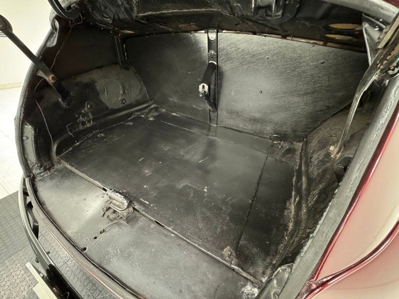 Almost shooting brake in its profile, this long car has an aggressive rake helped by staggered size tires on 14-inch polished American Racing Torque Thrust wheels and those tires enjoy a date code of mid 2021. It's impossible to miss the black canvas Carson top which looks like it could retract, but does not, however it does make for a unique presentation over the narrow windows. A trim piece breaks up the Tordo Red paint on the long panels, but the door handles have been shaved and the rocker panel color keyed to create a flowing body. It's a whale of a tail out back with a huge decklid flanked by Corvette style tail lights while up front, the frenched headlights bookend a modest, clean grille and black bumper. The paint and metal work is very nice with only some separation and crack in a lower panel corner.
