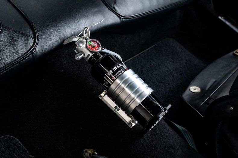 Inside, the cabin carries the same philosophy as the exterior. The original E-body layout remains, but the interior has been refined to match the car's performance and intent. New Vintage USA Detroit-series gauges fill the stock cluster, while the stainless Ididit tilt column and Hurst shifter give the driver a mechanical connection to the car. Vintage Air controls handle air conditioning, and Dynamat insulation throughout keeps heat and noise in check. A Pioneer head unit with Bluetooth connectivity joins an Alpine amplifier to power JL Audio speakers and an Alpine sub. Between the bucket seats is a mounted fire extinguisher, included as a simple and sensible safety feature.