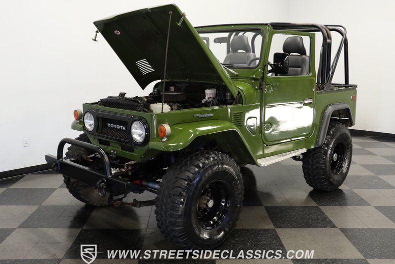 Combining a ruggedly stout appearance with an upgraded powertrain, this 1975 Toyota Land Cruiser FJ40 Restomod is one compelling ride. It's dressed in olive drab paint, a fitting homage to the Land Cruiser's longstanding military roots, and it has a very capable appearance that beckons you to jump inside, grab the wheel, and create new chapters of motoring adventure, both on and off the asphalt. Its distinctive color has a nice gloss, despite the enticement this off-roader presents for vigorous driving. Outfitted with a stance that strikes just the right balance between ground clearance and practicality for frequent driving, this classic is an outstanding representative of its model.