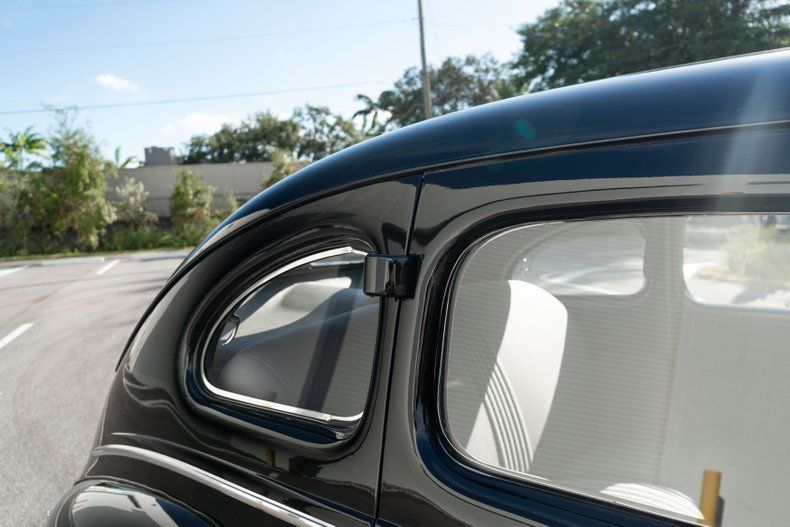 Key Facts: 70k Miles Shown 239ci Flathead V8 Three-Speed Manual Transmission Black Paint Beige Cloth Upholstery 15" Steel Wheels w/Hubcaps Whitewall Tires Glovebox-Mounted Dashboard Clock Prestige AM/FM/Cassette Stereo Front & Rear Lap Belts