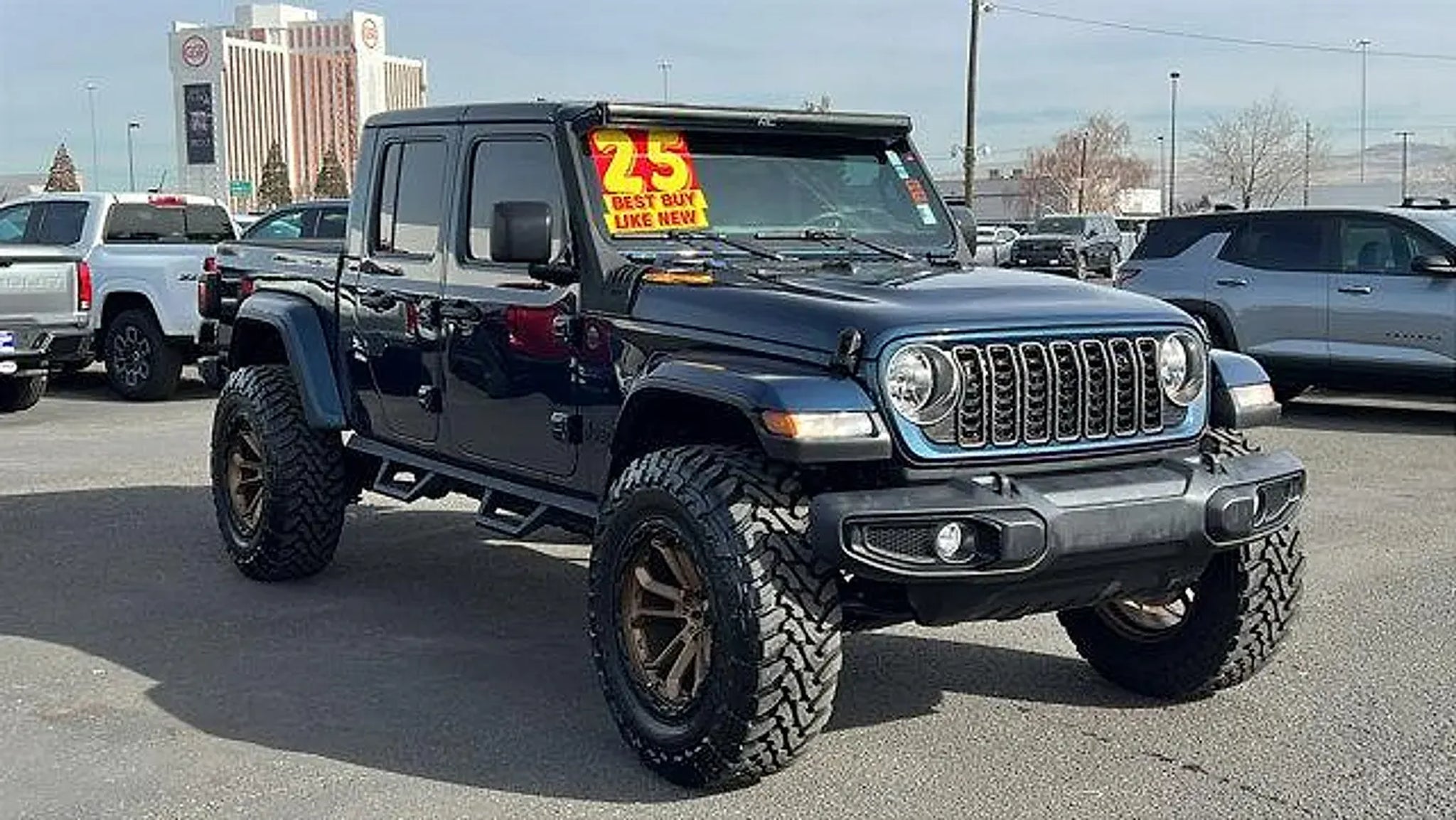 Introducing the 2025 Jeep Gladiator Nighthawk 4x4, a rugged and versatile pickup that combines unmatched off-road capability with modern style. This limited availability model features an eye-catching Fathom Blue Pearlcoat exterior, complemented by a sleek black interior that exudes sophistication and comfort. Powered by the proven Pentastar 3.6L V-6 DOHC engine, this Gladiator delivers an impressive 285 horsepower, ensuring you have the power you need for any adventure or daily task. The advanced variable valve control enhances fuel efficiency without compromising performance, making this vehicle a smart choice for both work and play. Equipped with Jeep's legendary 4x4 system, the Gladiator Nighthawk is built to conquer diverse terrains with confidence, whether you're navigating city streets or exploring rugged backroads. Combine that with its spacious cargo bed and versatile interior, and you have a vehicle that truly excels in functionality. Don't miss your chance to own this exceptional 2025 Jeep Gladiator Nighthawk 4x4. With its striking design and robust capabilities, it's the perfect companion for all your journeys. Elevate your driving experience today!