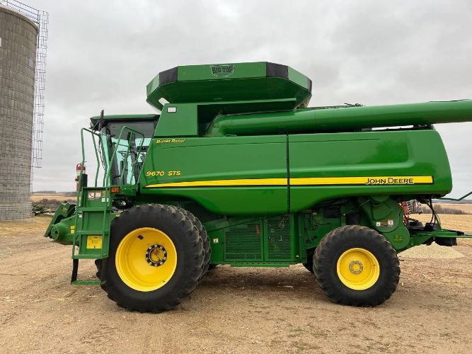 2009 John Deere 9670 STS Combine This 2009 John Deere 9670 STS Combine is in excellent condition with 3,523 machine hours and 2,226 separator hours. It has 318 engine hours on a complete JD reman engine, ensuring reliable performance. Key features include a Power Cast tailboard spreader for improved residue distribution, an auto steer valve for precision guidance, and 520/80/38 duals for enhanced traction and stability. The combine also comes equipped with Contour Master for improved header contouring, Estes concaves for optimal grain quality, and a Cary Big Top hopper extension for increased capacity. Additional features include a rear hitch, deluxe cab, and serial number H09670S731674. This well-maintained machine is ready for the next season. Located in Rosemount, MN 55068 For more information, please call 833-265-6113 and mention ID 20685