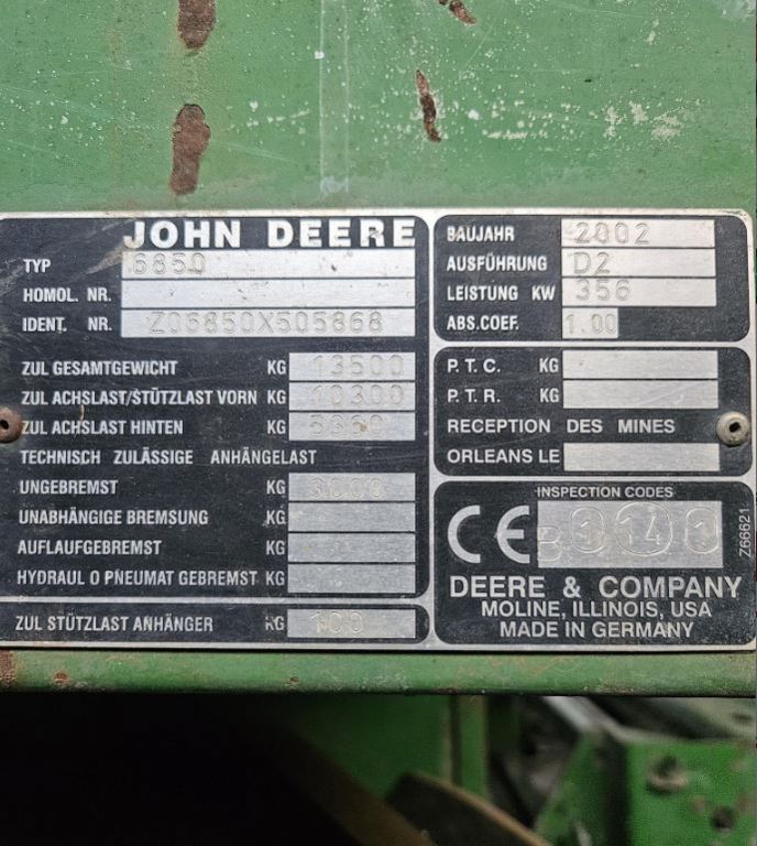 2002 JOHN DEERE 6850 Self Propelled Harvester This 2002 John Deere 6850 Self-Propelled Harvester delivers robust performance with 450 HP and reliable 4WD, making it a powerful machine for demanding harvests. It features a kernel processor and comes equipped with a nice 640B hay head. Over the last two years, more than $30,000 has been invested in new wear parts, including a fully redone processor and two new feed rolls, ensuring peak efficiency and longevity. The cutter drum has also been updated, and the harvester has just under 2,000 cutter hours on the entire unit. Well-maintained and ready to tackle your next harvest season with confidence. Located in Thorp, WI 54771 For more information, please call 833-265-6113 and mention ID 91424 Serial Number: