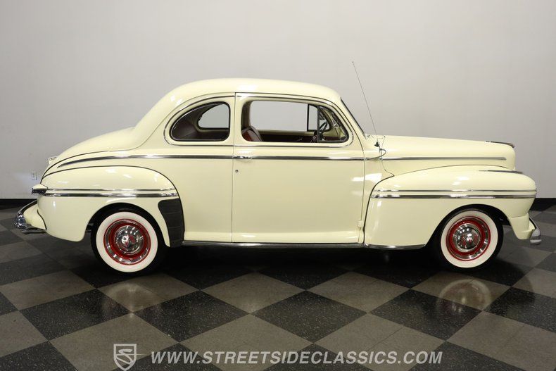 Such a sharp specimen of post-war luxury! This 1946 Mercury Coupe is one of those rare classics from decades long past that retains its convincing original form but also features some pivotal modifications that enhance its drivability, as well as the enjoyment of its next lucky owner. It wears Maize Yellow paint that mirrors a Mercury color option when it first debuted, and it still retains a shine that's accented nicely by a collection of chrome bumpers and trim whose pristine condition belies their age. Take a lap around this good-looking ride and you'll likely be impressed at how clean its body lines still are, and how its doors, hood, and trunk shut with a reassuring thud. The weatherstripping was likely replaced not all that long ago and still protects the door jambs, drip rails, and interior from the elements.