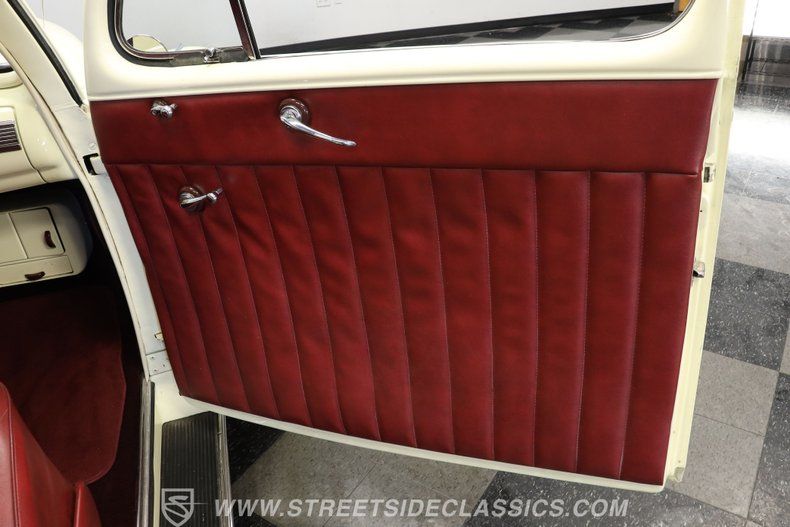 Lift this Mercury's sculpted hood and you'll see an engine bay that's well-maintained, with a 239-cubic-inch flathead V8 at its center that's been outfitted with a pair of Edelbrock cylinder heads and a Holley 4-barrel carburetor to increase its abilities without seriously detracting from the compartment's largely authentic appearance. This flathead actually represented quite an advancement when it was released, in that it featured more torque than previous iterations of the V8, and it's trailed by an integrated bell housing that drastically reduced drivetrain vibrations over earlier models. An electric fan has been added to keep engine temperatures down, along with an MSD ignition to maximize spark.