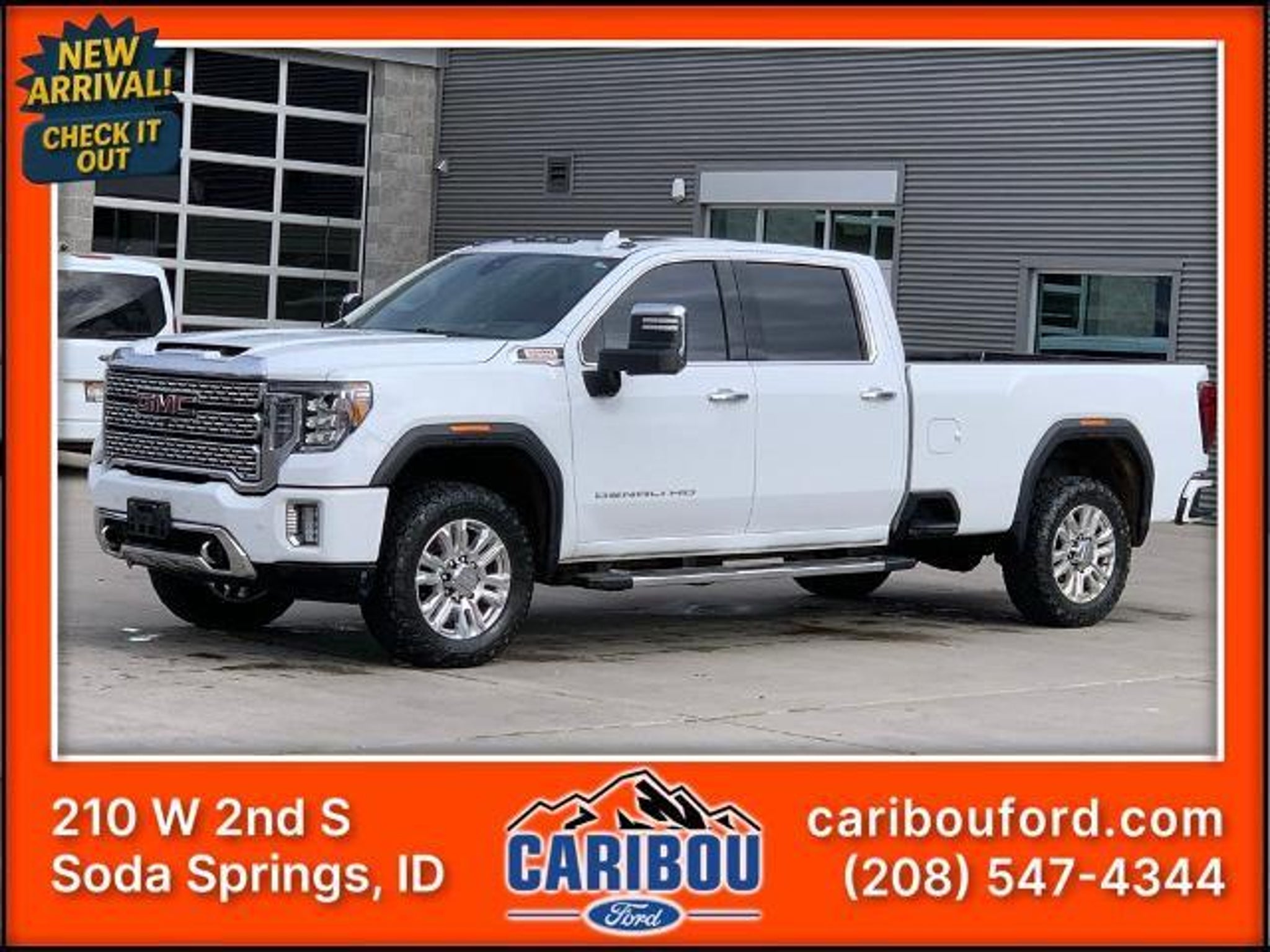 *CLEAN CARFAX*, 10-Speed Automatic, 4WD, Jet Black Leather, 12-Volt Rear Auxiliary Power Outlet, 120-Volt Bed Mounted Power Outlet, 120-Volt Instrument Panel Power Outlet, 2 USB Ports (First Row), 2 USB Ports Inside Console, 2-Speed Active Transfer Case, 2nd Row Dual USB Charge-Only Ports, 2nd Row Heated Outboard Seats, 4G LTE Wi-Fi Hotspot Capable, 6 Rectangular Chromed Tubular Assist Steps, Automatic Emergency Braking, Chrome Recovery Hooks, Compass Located In Instrument Cluster, Deep-Tinted Glass, Denali Ultimate Package, Driver Alert Package I, Driver Alert Package II, Electric Rear-Window Defogger, Electrical Lock Control Steering Column, Floor-Mounted Center Console, Following Distance Indicator, Forward Collision Alert, GMC Connected Access Capable, Gooseneck/5th Wheel Package, Gooseneck/5th Wheel Prep Package, HD Rear Vision Camera, Heated Driver & Front Outboard Passenger Seats, Integrated Trailer Brake Controller, IntelliBeam Automatic High Beam On/Off, Keyless Open & Start, Lane Change Alert w/Side Blind Zone Alert, Lane Departure Warning System, LED Cargo Area Lighting, Manual Tilt-Wheel/Telescoping Steering Column, Navigation System, OnStar & GMC Connected Services Capable, Polished Exhaust Tip, Power Door Locks, Power Front Passenger Windows w/Express Up/Down, Power Front Windows w/Driver Express Up/Down, Power Rear Windows w/Express Down, Power Sliding Rear Window w/Defogger, Power Sunroof, Preferred Equipment Group 5SA, ProGrade Trailering System, Rear Cross Traffic Alert, Remote Vehicle Starter System, Safety Alert Seat, Signature Denali Grille w/High Gloss Black Mesh, Spray-On Pickup Bed Liner w/Denali Logo, Steering Wheel Audio Controls, Technology Package, Ultrasonic Front & Rear Park Assist, Unauthorized Entry Theft-Deterrent System, Universal Home Remote, Ventilated Driver & Front Passenger Seats, Wireless Charging. Whatever your automotive needs may be, Caribou Ford is here to serve you. Located at 210 West 2nd South in Soda Springs, Idaho, we're a quick drive away from the surrounding Afton WY, Idaho Falls, Pocatello and Montpelier ID areas. Come see what we can do for you today. 2020 GMC Sierra 3500HD Denali Summit White