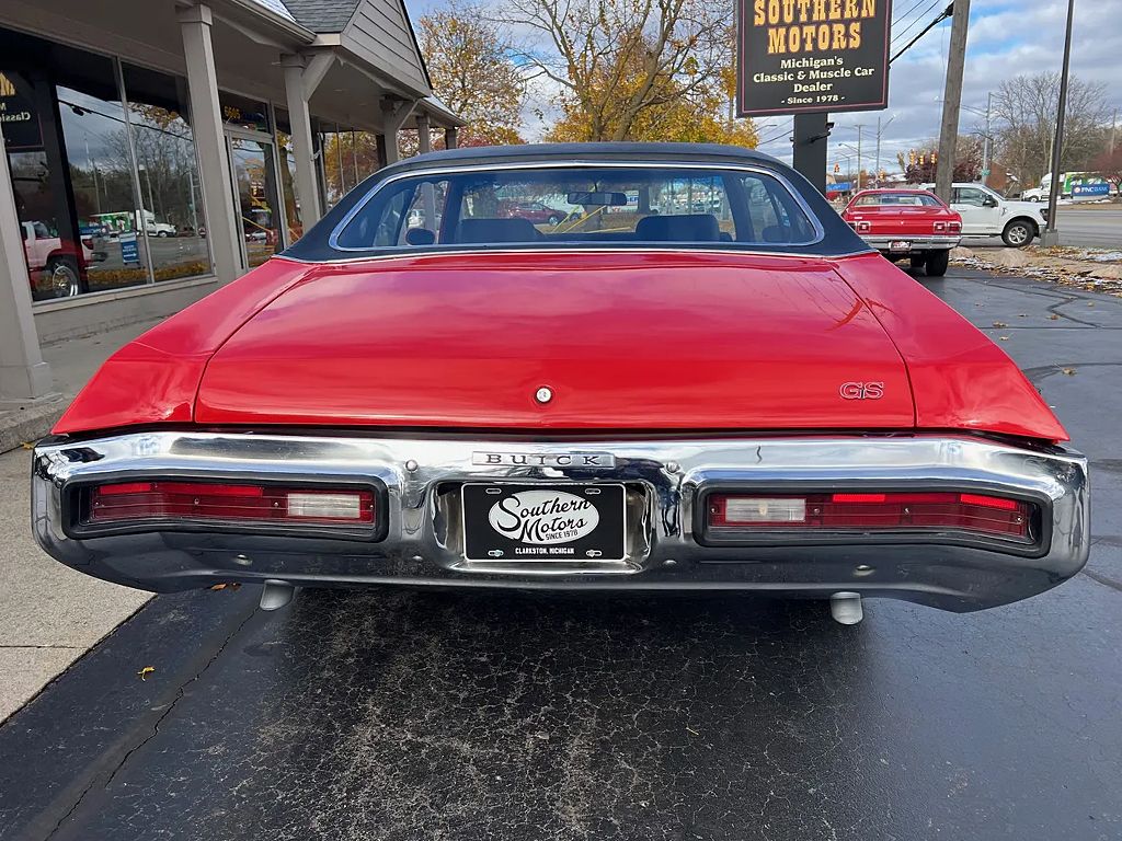 SOLD. True (G) Gran Sport, factory (75) Fire red car, factory black vinyl top, factory (108) black vinyl interior, 455 ci engine, Fitech fuel injection, Edelbrock Performer aluminum intake, Scott Brown hydraulic roller camshaft, Edelbrock Performer RPM aluminum heads, headers, factory air cleaner, Buick finned aluminum valve covers, HEI distributor, power steering, power 4 wheel disc brakes with slotted & drilled rotors, factory air conditioning, 350 turbohydramatic transmission with shift kit, factory bucket seats with center controls, tilt column with Sport shifter, factory tach & gauges, custom sounds system, rear defog, remote driver’s mirror, H-pipe Dynomax dual exhaust, factory 12 bolt 3.42 limited slip rear axle with sway bar, 255/60R15 Cooper rear tires, 235/60R15 fronts, 15” American Racing Torque Thrust wheels, dual sport mirrors, Ram Air hood, Soft Ray glass, One Quick GS!