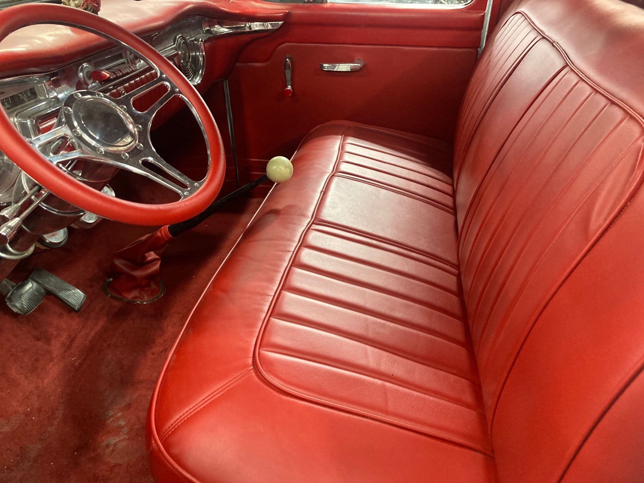 AND BIKES. THIS COOL TRUCK HAS SOM NEAT FEATURES. 1954 OLDS DASH, AND GRILL. 1952 BUICK TAIL LIGHTS. CUSYOM TAIL GATE. LATE MODEL FORD MUSTANG 302 V-8 5 SPEED, POWER DISC BRAKES, VOLARY FRONT END WITH TORTION BAR SYSPENSION, 9 INCH REAR END. REVERSE FORWARD HOOD. NEW ALUMINUM RADIATOR. NEW CHROME TILT COLUMN WITH CUSTOM STEERING WHEEL.NEW RED CUSTOM INTERIOR. DRIVES THE BEST. RUNS STRONG.