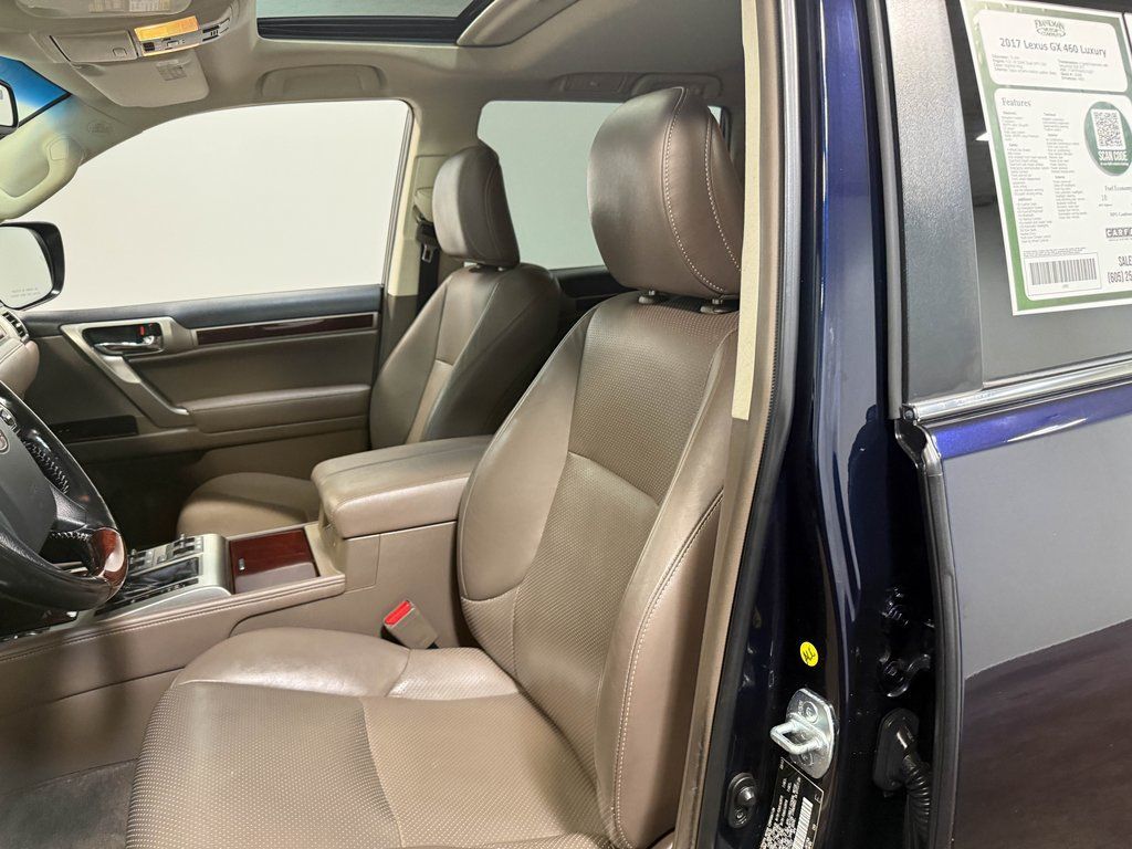 Nightfall Mica 2017 Lexus GX 460 Luxury 4WD 6-Speed Automatic with Sequential Shift ECT 4.6L V8 DOHC Dual VVT-i 32V *Leather Seats Navigation System Sunroof/Moonroof Bluetooth Backup Camera Collision Avoidance System Collision Warning System Heated and Cooled Seats Heated Seats Blind-Spot Monitors Lane Keeping Assist Touchscreen Controls Keyless Access with Push Button Start Automatic Headlights 3rd Row Seats Keyless Entry Multi-zone Climate Control Steering Wheel Controls Premium Wheels Moonroof Navigation System Trailer Hitch 3rd row seats: split-bench 9 Speakers Adaptive suspension Auto tilt-away steering wheel Auto-Dimming & Power-Folding Exterior Mirrors Auto-dimming door mirrors Auto-dimming Rear-View mirror Auto-leveling suspension Automatic temperature control Delay-off headlights Driver Attention Monitor Driver Support Package w/Mark Levinson Audio Exterior Parking Camera Rear Front dual zone A/C Front fog lights Fully automatic headlights Genuine wood console insert Genuine wood dashboard insert Genuine wood door panel insert Heated & Ventilated Front Bucket Seats Heated door mirrors Heated rear seats Heated steering wheel Illuminated entry Illuminated running boards Intelligent High-Beam Headlamps Lane Keeping Assist System Leather Shift Knob Leather steering wheel Navigation System Power moonroof Power passenger seat Pre-Collision System w/Dynamic Radar Cruise Ctrl Radio: AM/FM Lexus Premium Audio Rain sensing wipers Rear window defroster Remote keyless entry Steering wheel memory Steering wheel mounted audio controls Turn signal indicator mirrors Ventilated front seats Wheels: 18" x 7.5" Split 6-Spoke Aluminum Alloy.