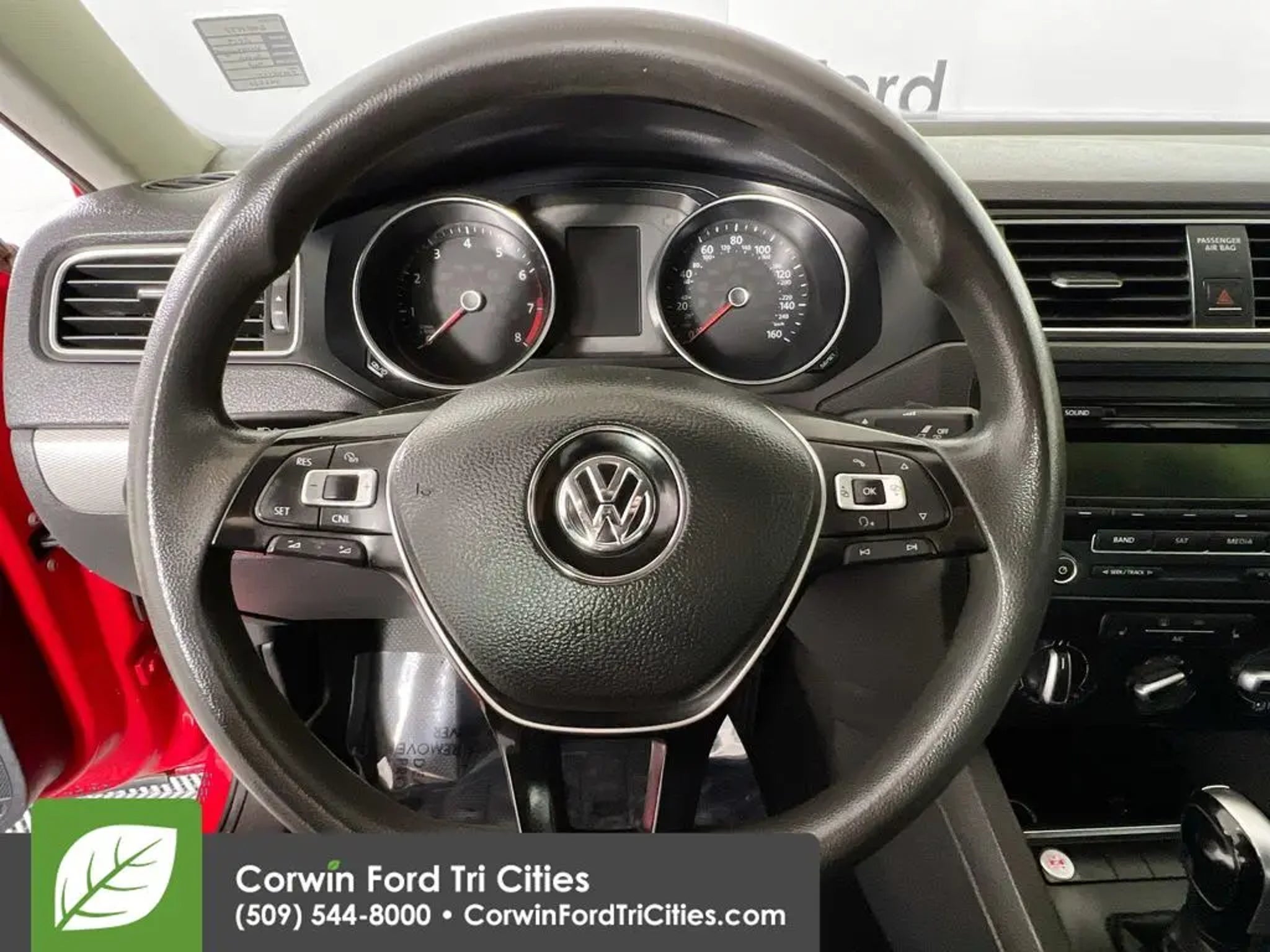 Ready to roll, our One Owner 2015 Volkswagen Jetta SE Sedan looks excellent in Tornado Red! Powered by a TurboCharged 1.8 Liter 4 Cylinder that offers 170hp connected to a responsive 6 Speed Shiftable Automatic transmission that adds a sports car feel to a sedan. Agile suspension, powerful brakes, and a feeling of flat-out fun while scoring nearly 36mpg on the road best describe this Front Wheel Drive Jetta. A beautiful fresh front grille, heated side mirrors, and other fresh features for optimal aerodynamics enhance the streamlined, classic design of our Jetta SE. Inside our Jetta SE, the modern and spacious interior has premium power seating with power windows/locks, air-conditioning, a trip computer, and keyless entry handy! Just imagine yourself behind the wheel of this beautiful sedan listening to your favorite songs on a great sound system with available satellite radio, iPod interface, CD player, and an auxiliary audio jack...now try to suppress a smile! The safety features of this Volkswagen are amazing. With strengthened pillars, door sills, six airbags, an Intelligent Crash Response System, ABS w/Electronic Stability Control, and more, our a great safety pick! Reward yourself with this Jetta SE sedan nand make each commute more exciting! Save this Page and Call for Availability. We Know You Will Enjoy Your Corwin Ford Tri-City Test Drive Towards Ownership! See us today at Corwin Ford Tri-Cities. Family owned for over 100 years! Excellent selection of New and Used vehicles, Financing options. Serving Pasco, Kennewick, Richland, Walla Walla, Hermiston, Umatilla, Yakima, Spokane, Sunnyside, Grandview, Dayton, Prescott, Benton County, Franklin County, Yakima County, Spokane County, Adams County, Grant County, and the Greater Columbia Basin. *All Prices plus applicable sales tax and licensing. A negotiable documentary service fee up to $200 may be added to sales price or capitalized cost of the vehicle. One vehicle unless otherwise noted and subject to prior sale without notice. While supplies last. EPA mileage estimates are for newly manufactured vehicles only. Your actual mileage will vary depending on how you drive and maintain your vehicle.