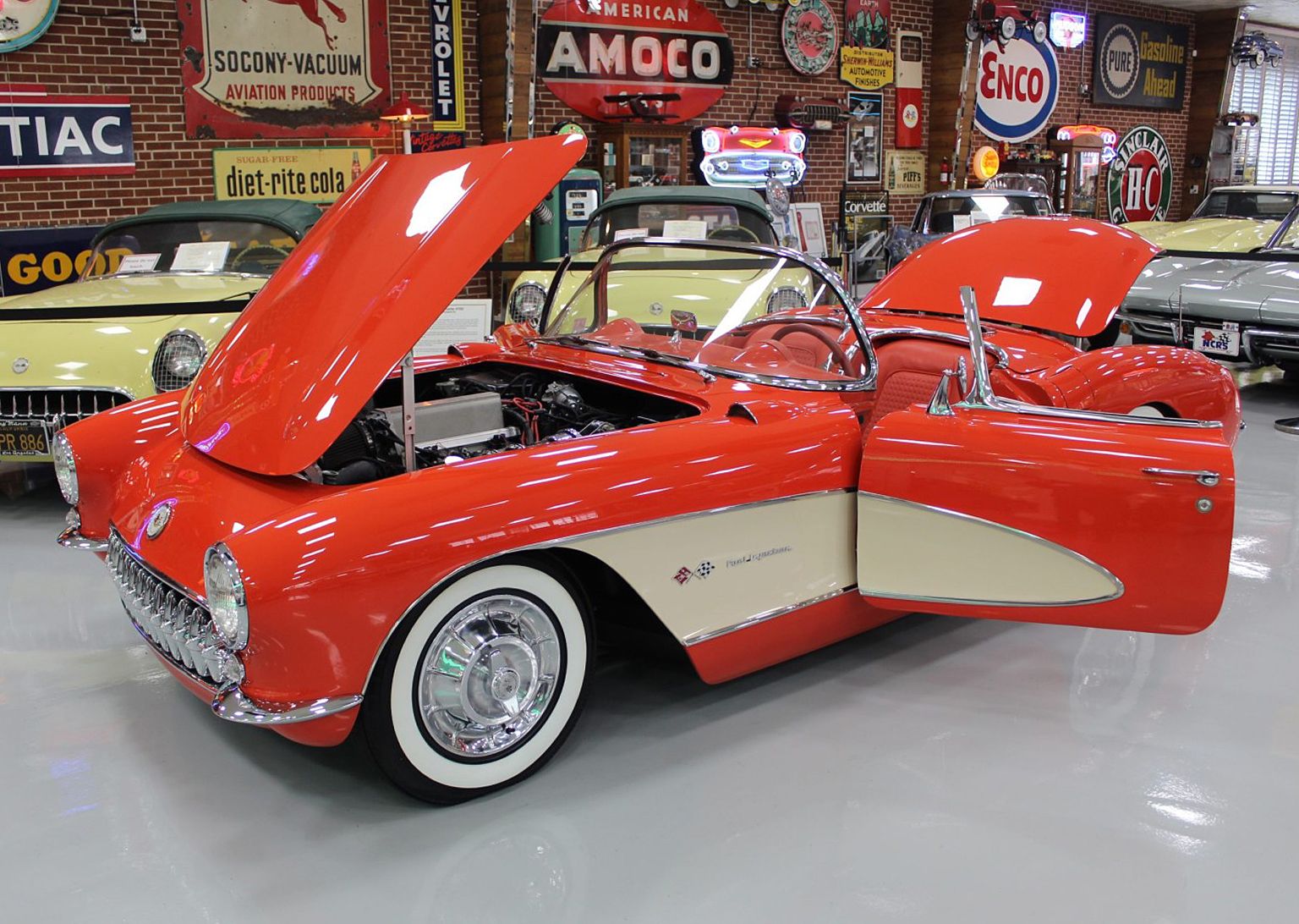 1957 Corvette Resto Mod Convertible Roadster. Venetian Red, Red Interior, Beige Coves, Black Soft Top, Ram Jet GM 350ci V8 Engine, EFI transmission, Power Brakes, Custom Sound Radio, Custom Auto Meter, Gauges, Custom Fabricated Front A-Arms, Lowered Rear Suspension, Original Frame Rails, Custom Seating, Complete Restoration, Coker Tires and Wheel, Great looking Resto Mod. Trades Condidered! www.vintagecorvettes.com or call 706 857-3916 or