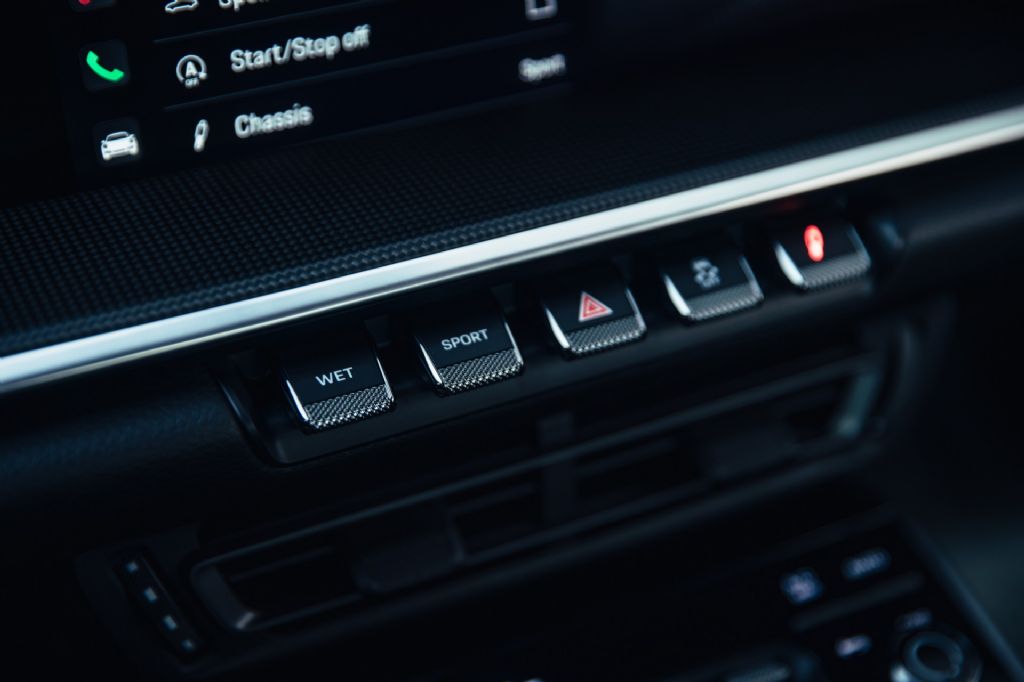 Visually, this 992 Carrera S commands attention with its sleek silhouette and staggered 20-inch front and 21-inch rear Carrera Classic wheels that emphasize its athletic stance. The power sunroof adds an open-air element to the driving experience, while Porsche Dynamic Light System Plus ensures optimal visibility and a distinctive lighting signature. Every line and curve serves both an aesthetic and aerodynamic purpose, reinforcing the car's functional beauty.
