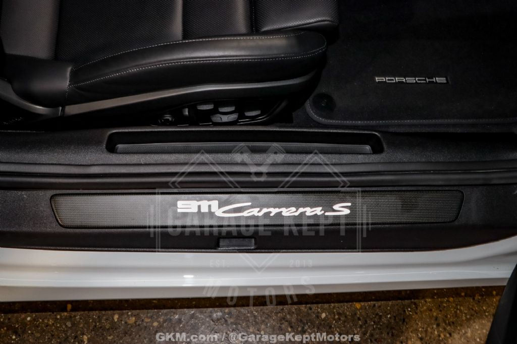 Under the rear decklid sits a potent 3.0-liter twin-turbocharged flat-six engine producing 443 horsepower, paired to Porsche's lightning-fast 8-speed PDK dual-clutch transmission. The combination delivers breathtaking acceleration and razor-sharp shifts, offering an exceptional driving experience whether on the highway or the backroads. The Carrera S's balanced chassis and rear-engine layout provide impeccable handling, while the sport exhaust system enhances the car's character with an aggressive, unmistakable Porsche soundtrack.