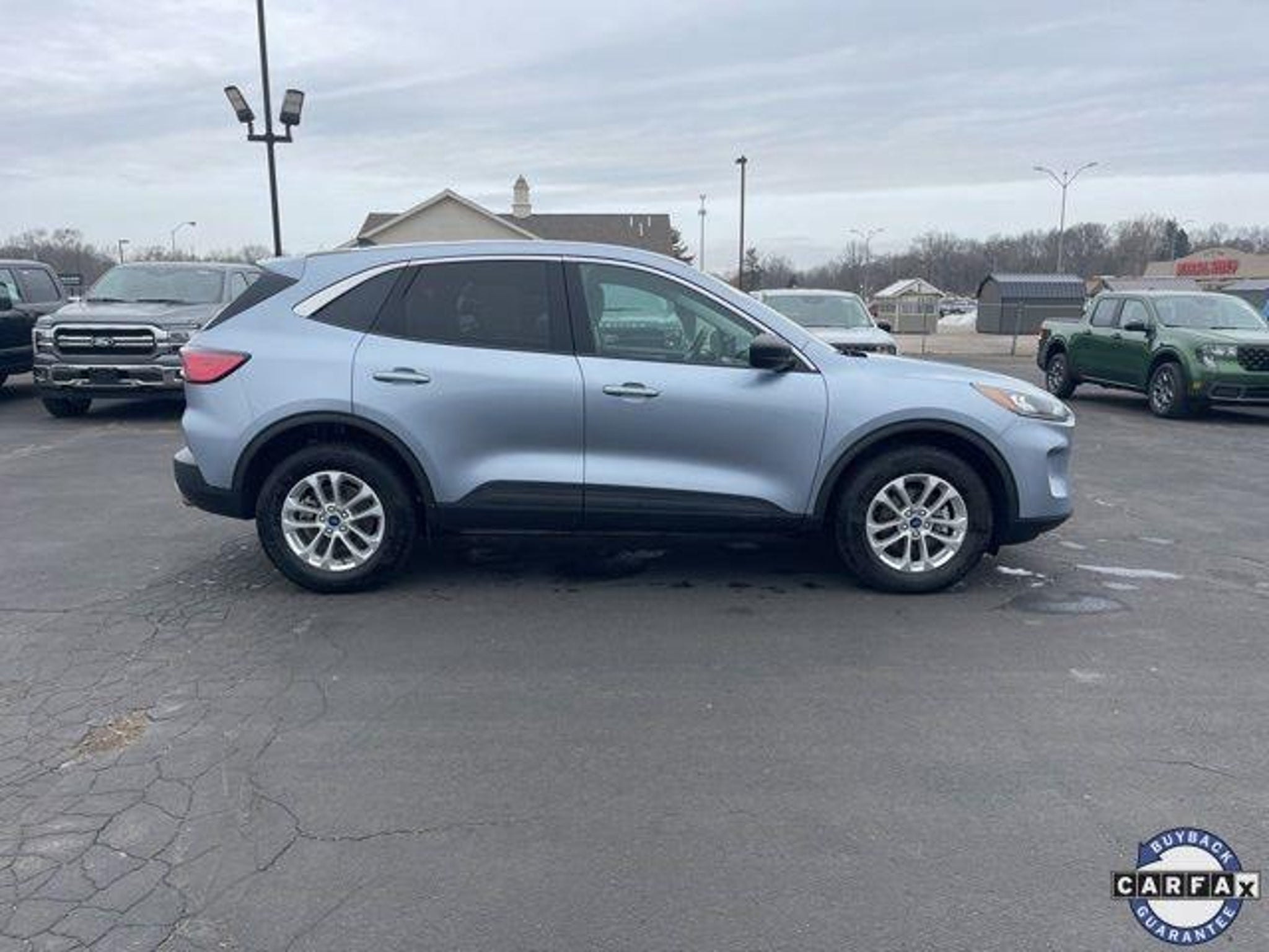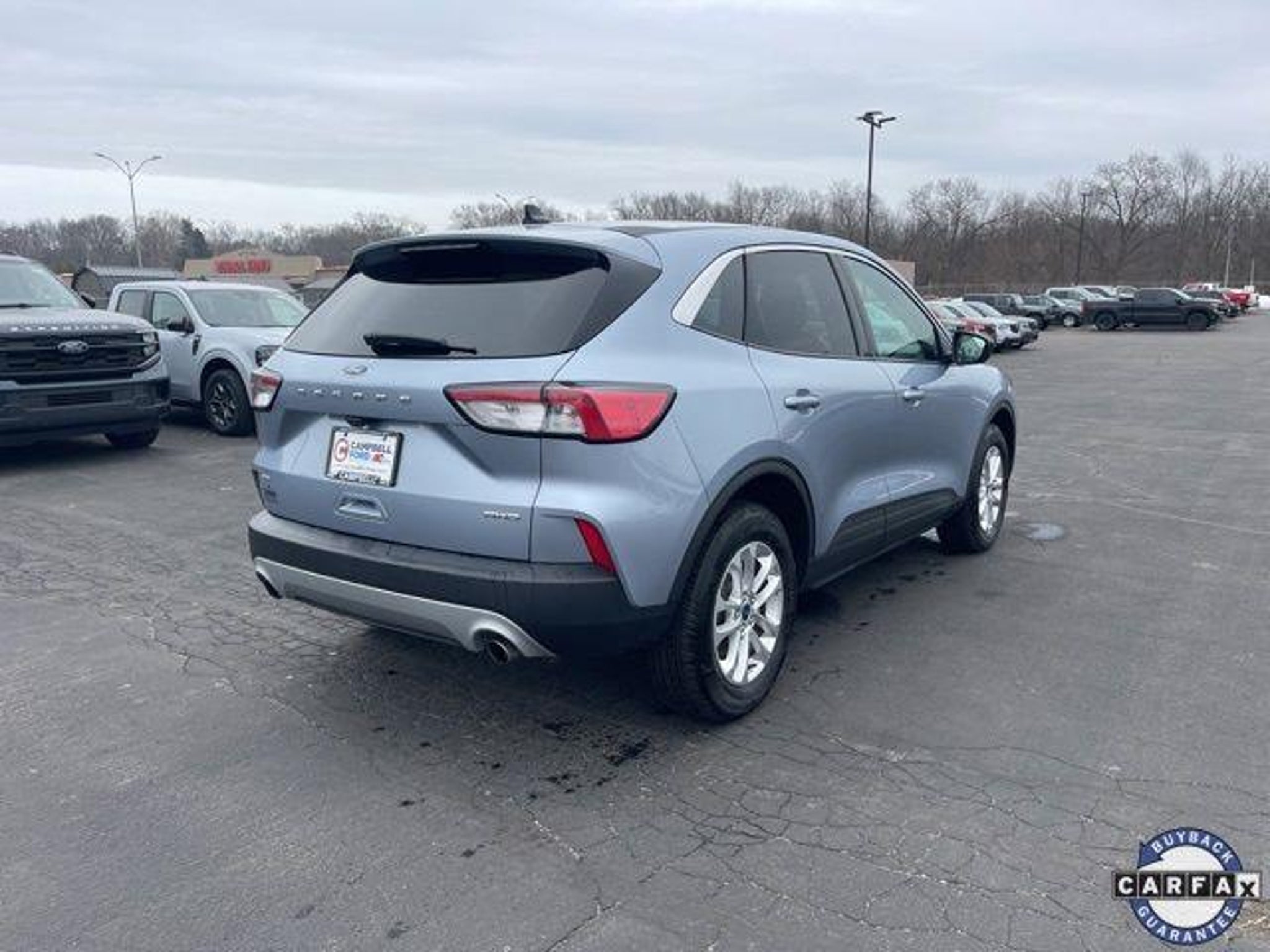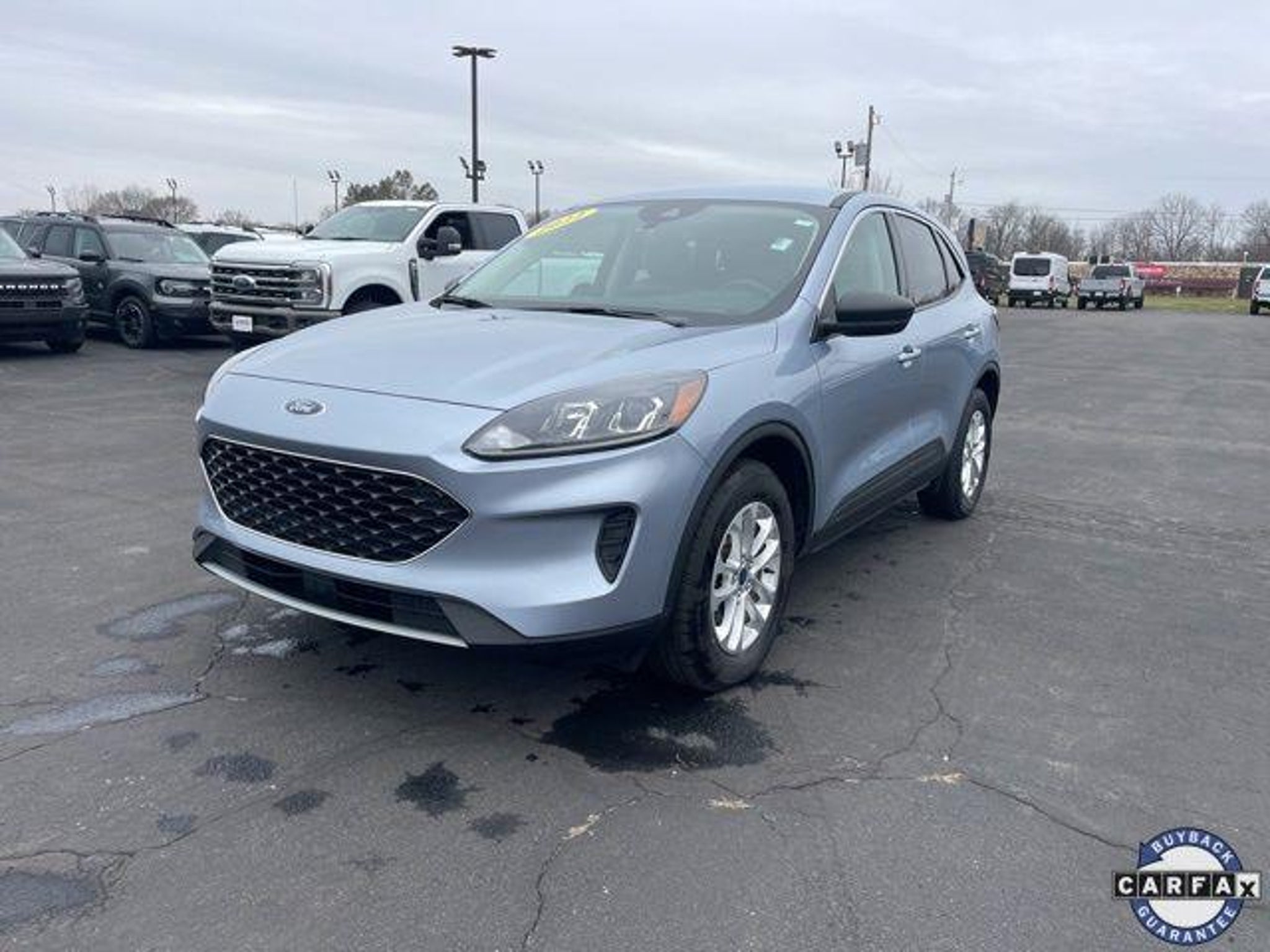 Experience confident capability and everyday versatility in this 2022 Ford Escape SE, finished in the eye-catching Iced Blue Silver Metallic. Equipped with AWD and powered by a responsive 1.5L EcoBoost engine paired to an 8-Speed Automatic transmission, this Escape is engineered to deliver a smooth, efficient drive while maintaining the traction and control you need in changing road conditions. This Escape SE features Equipment Group 200A, providing a smart balance of comfort, technology, and safety. Riding on 17 Shadow Silver Painted Aluminum wheels, the exterior presents a clean, modern look that's both practical and stylish. Up front, Halogen Projector Headlamps with LED Signature lighting enhance visibility while adding a distinctive design element, and heated sideview mirrors offer added convenience in colder weather. Inside the cabin, you'll find Unique Cloth Front Bucket Seats designed for comfort and support on both short commutes and long drives. The interior is thoughtfully laid out with functional details like the fold-down rear center armrest with dual cupholders, making rear-seat travel more comfortable for passengers. Added protection and durability come from the Front & Rear Floor Liners (without carpet mats), ideal for keeping the interior clean year-round. Comfort is further enhanced with Electronic Automatic Temperature Control (EATC), allowing you to maintain your ideal cabin temperature with ease. The Cold Weather Package makes this Escape especially appealing in cooler climates, offering features that help you stay warm and comfortable when temperatures drop. The Convenience Package adds everyday functionality that makes errands, commuting, and road trips simpler and more enjoyable. Technology and safety are at the forefront thanks to Ford Co-Pilot360 Assist, a suite of advanced driver-assist features designed to provide extra confidence behind the wheel. Whether navigating busy highways or city streets, these systems work together to help enhance awareness and peace of mind. This Escape also reflects Fords adaptable approach to technology, with the 4G LTE Wi-Fi Hotspot Removal, keeping the vehicle streamlined while still offering modern connectivity through Fords intuitive systems. Overall, this 2022 Ford Escape SE AWD delivers a well-rounded driving experience with smart features, all-weather confidence, and a comfortable, functional interior. From daily commuting to weekend getaways, its a compact SUV designed to fit seamlessly into your lifestyle while offering the reliabil