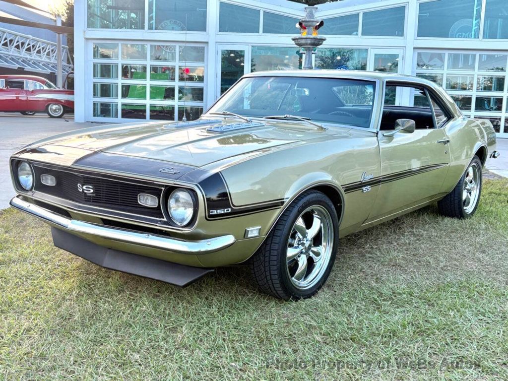 1968 Chevrolet Camaro SS Why This Car Is Special The 1968 Chevrolet Camaro stood in many forms from classic car to muscle car. As we present to you this particular Camaro in it's pristine state of perfection to durable capability of today's driving. Capturing the spirit of the late 1960s with its stock features and upgraded performance-enhanced features, this Camaro isn't just a sight seer; its a vehicle that you or anyone would dream to travel from coast to coast. With its many features, its designed to all to love. Features List - ME code 327 small block Chevy engine with 210 horsepower - Ash Gold paint job, an original paint code option available in 1968 - Matching (GG) color code confirmed by trim tag - Iconic black D90 'hockey stripe' - SS (Super Sport) hood and badging - Front and rear spoilers - Special edition chrome American Racing wheels - High-performance Continental tires - Upgraded black standard interior - Twin bucket seats - 3-spoke wooden steering wheel - Correct console with horseshoe shifter - Upgraded Retrosound radio - Matching numbers engine verified by front stamping - Chrome valve covers, air cleaner, and headers - Power steering - Front disc and rear drum brakes - Added vintage air conditioning -Aluminum radiator - 10 bolt rear end - Dual Flowmaster exhaust system - Two-speed Powerglide transmission Mechanical Under the hood of this 1968 Camaro lies is its 327 small block Chevy engine, an engine designed to produce 210 horsepower. With its GM Chevy orange engine block brightened with its chrome-finished components including valve covers, air cleaner, all of which makes the car pop with beauty. When driving this car, you will feel as if you are riding on water. Not to mention with the safest features of power brakes as well as the relaxation of power steering there is not more you could ask for. Let's not forget the a/c for those hot summer days where you only have to hear your ride, not your passengers. The car also features chrome headers to allow your engine to breathe but sound mean. While continuing to the underside to a dual flowmaster exhaust system a short but powerful 10 bolt rear end and a durable two speed powerglide transmission you get to experience a wonderful riding experience Interior When you open the door, the Camaro displays an upgraded but all correct black standard interior that includes high-quality twin bucket seats and a classic 3-spoke wooden steering wheel, still keeping to its original figure the vehicle holds the original gold interior within the trunk. Moving foward inside you still have your standard speedometer and fuel gauge the only needed necessities of a classic, as so your passengers will enjoy the ride as much as you will with the safety and comfort of the Camaro as it has an upgraded retrosound audio system and lap safety seatbelts. Exterior This Camaro's exterior is painted with a rare yet cool color Ash Gold, complemented by a black D90 'hockey stripe' that truly makes the car. The SS badging and hood boast its Super Sport lineage, while the special edition chrome American Racing wheels and Continental tires underline its premium status. Front and rear spoilers added as many Camaros seen. It's shinning trim to its body lines is a true beauty Conclusion The 1968 Chevrolet Camaro is not just a car; it is a vehicle that pulls attention to not only it's owner but anyone whose eyes lie on it. With its unique blend of original features and upgrades, this Camaro is ready to deliver both thrilling drives and appreciative nods at car shows. Whether youre a collector or an enthusiast longing to relive the golden era of muscle cars, this Camaro promises to exceed expectations. Interested parties are warmly invited to contact us at 941-254-6608 to discover more about this exceptional vehicle. Disclaimer Information found on the website is presented as given to us by the owner of the car, whether on consignment or from the owner we bought it from. So WeBe Autos Specializes in Marketing and Advertising Muscle, Classic, Vintage and Specialty Cars. We offer Professional Photography, HD Movies, and Staging that Sells Cars. Let us showcase and sell your specialty car. Please visit our website for more details. Keep in Touch, Michael Runnalls Specialty Car Marketing & Media WeBe Autos Ltd. Long Island, NY 11780 Michael@WeBeAutos.com www.WeBeAutos.com (O)631-339-0399 (C)516-729-2003 Skype: webeautos (F)631-389-2605 - - - Contact Michael Runnalls at 631-339-0399 or Michael@WeBeAutos.com for more information. -