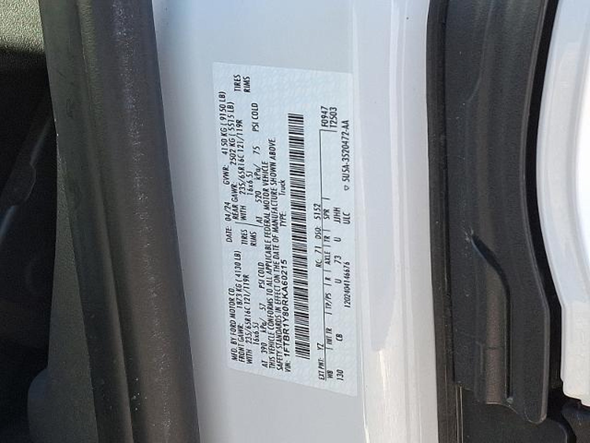 VIN 1FTBR1Y80RKA60215