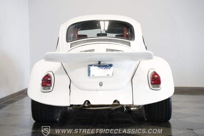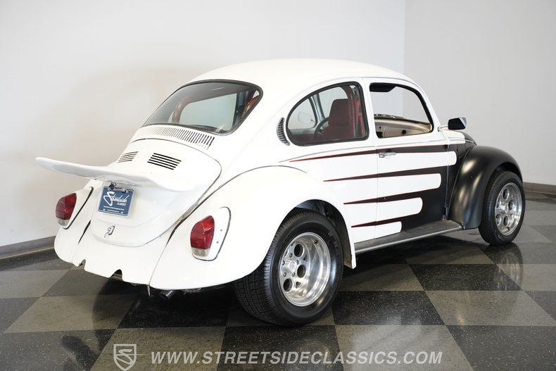 Here's a fun little car with a cool paint scheme that pairs nicely with the red interior. This 1973 Volkswagen Beetle has a unique look with its staggered wheels, rear spoiler, interior roll bar, and custom front fenders with integrated headlights. This Volkswagen Beetle is a great way to join a culture that some say you can never leave. With VW events held all over the world, you'll never run out of things to do.