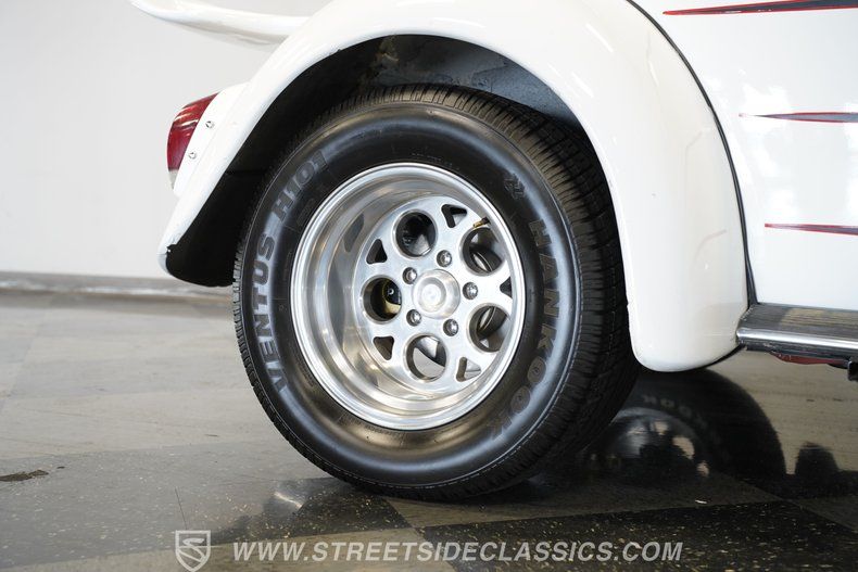 1600cc 4-Cylinder Engine 4-Speed Manual Transmission VW Transaxle Front Straight Axle With A Pair Of Shocks Rear Trailing Arms And A Pair Of Adjustable Coil-Overs Connected To A Swing Axle 15-Inch Staggered Wheels Front 135R15 Nanking CX-668 Tires DOT 2015 Rear 295/50R15 Hankook Ventus H101 DOT 2019 Four-Wheel Disc Brakes Long Tube Headers/Aftermarket Muffler New Floor Pans Short-Throw VW EMPI T-Shifter VW EMPI Gauges AM/FM/CD/Aux With Bluetooth Radio Aftermarket Speaker Rust Free