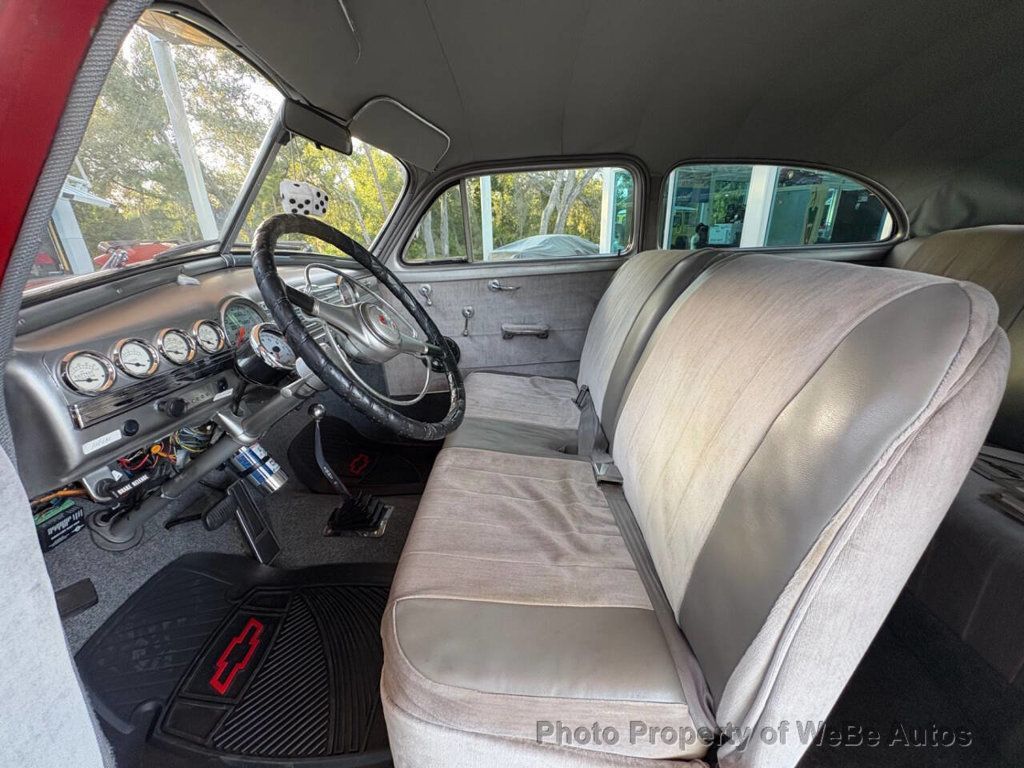 1947 Chevrolet Fleetmaster Why This Car Is Special The 1947 Chevrolet Fleetmaster stands as a remarkable testament to post-war American ingenuity and style. With its eye-popping red and purple flame exterior and a host of modern upgrades, this Fleetmaster is not merely a car; it's a bridge between the classic charm of the 1940s and the high-performance expectations of todays discerning collector. Ideal for someone who cherishes vintage aesthetics but craves contemporary reliability and power, this vehicle is a collector's dream. Features List - Speed shop comp cam 280H 350 V8 engine - Holley 670 CFM Street Avenger carburetor - Accel Blueprint HEI ignition system - Cyclone Headers - Walker Cobra radiator with Cooling Components Fan - TCI Street Rodder TH350 automatic transmission - TCI 9' 2.70 Night Special Converter - Engineered Components, Inc. Mustang Dual FR Master Cylinder - BF Goodrich TA tires on American Racing Wheels - Updated 1977 GM wiring - A suite of Classic Instruments gauges - Sun Super Tach and Auto Meter Speedometer - Dakota Digital Gear Shift Sender - Modern electric wipers and digital tach - Pioneering sound system with components from Pioneer and Kicker - Specialty Purple Sound System by Street/Glow Kicker - Passed the NSRA 23-point safety inspection - Includes a specialty owners manual Mechanical Under the hood lies a robust 280H 350 V8 engine equipped with a Holley 670 CFM Street Avenger, ensuring not just power but also precision in performance. The Cyclone Headers complement the Accel Blueprint HEI ignition system to provide a reliable and explosive driving experience. Cooling is managed by a Walker Cobra radiator paired with a Cooling Components Fan, showcasing a setup that is built to handle high performance without overheating issues. Interior Inside, the Fleetmaster offers a plush gray cloth interior that juxtaposes modern comfort with classic styling. The vehicle features a technically equipped dashboard including Classic Instruments gauges, a Sun Super Tach, and an Auto Meter Speedometer, all modern touches that respect the vintage feel. Electric wipers and a digital tach offer convenience while maintaining the cars classic charm. The superb Pioneer / Kicker sound system ensures that your ride is as entertaining as it is comfortable. Exterior The vibrant red body with striking purple flames makes for a head-turning appearance. This Fleetmasters exterior is finished to show quality, with attention to detail that respects its heritage while making a bold contemporary statement. The American Racing Wheels wrapped in BF Goodrich TA tires do not only add to the visual appeal but also enhance the driving dynamics of this classic. Conclusion This 1947 Chevrolet Fleetmaster is a seamless blend of the past and the present, making it a truly special vehicle for anyone who values both performance and style in a classic car. It offers an escape to the nostalgia of the 1940s while delivering the excitement of modern technology and engineering. Experience this perfect marriage of old and new by visiting us or calling at 941-254-6608 to learn more about this exquisite vehicle. Disclaimer Information found on the website is presented as given to us by the owner of the car, whether on consignment or from the owner we bought it from. Some Photos, materials for videos, descriptions and other information are provided by the consignor/seller and is deemed reliable, but Skyway Classics does not warranty or guarantee this information. Skyway Classics is not responsible for information that may incorrect or a publishing error. The decision to purchase should be based solely on the buyers personal inspection of the vehicle or by a professional inspection service prior to offer or purchase being made. WeBe Autos Specializes in Marketing and Advertising Muscle, Classic, Vintage and Specialty Cars. We offer Professional Photography, HD Movies, and Staging that Sells Cars. Let us showcase and sell your specialty car. Please visit our website for more details. Keep in Touch, Michael Runnalls Specialty Car Marketing & Media WeBe Autos Ltd. Long Island, NY 11780 Michael@WeBeAutos.com www.WeBeAutos.com (O)631-339-0399 (C)516-729-2003 Skype: webeautos (F)631-389-2605 - - - Contact Michael Runnalls at 631-339-0399 or Michael@WeBeAutos.com for more information. -