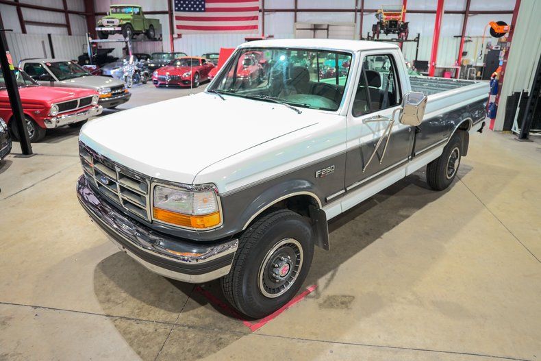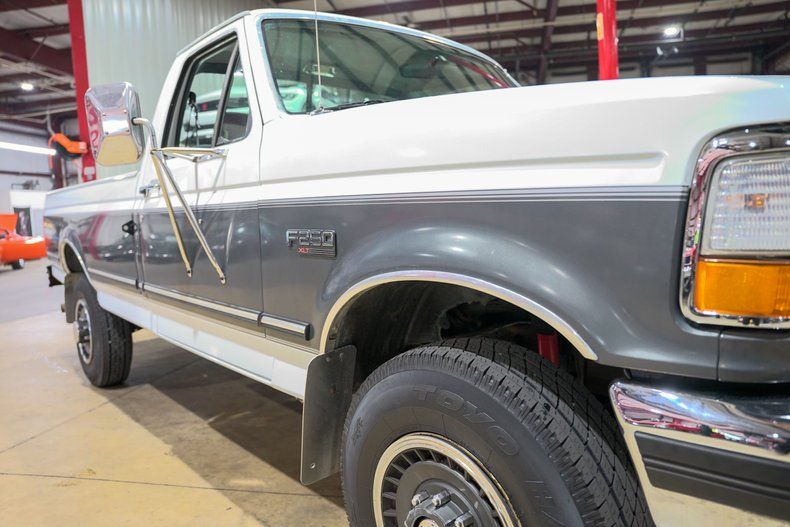 GR Auto Gallery is pleased to offer this American workhorse. This 1993 Ford F250 XLT pickup was recently harvested from the pacific northwest. This F250 is powered by its 7.5 liter V8 engine, automatic transmission and 4 wheel drive. Features include: Power steering, power brakes, power windows, power locks, air conditioning, dual tanks, aluminum wheels, tow package, front bench seat, upgraded stereo etc. The truck comes finished in two tone, Medium Platinum / Oxford White exterior paint over grey custom cloth interior.