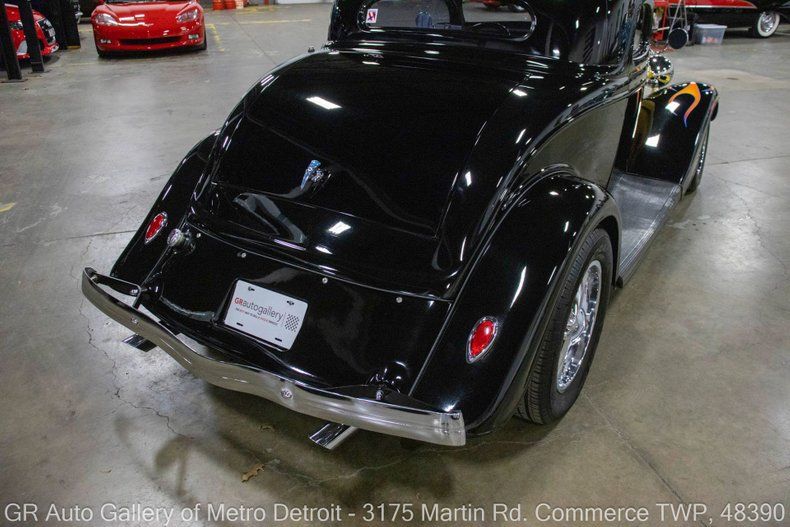 GR Auto Gallery is pleased to present this custom 1934 Ford 3-Window Coupe for your consideration. This stunning street rod features a Black exterior accented with painted flames over a Gray custom interior, showing just 9,645 miles since the build was completed. Power comes from a 383 cubic inch V8, paired to a TH350 automatic transmission, and geared through a Ford 9-inch rear end with 3.73 gears. This '34 Coupe rides on an Outlaw body and Outlaw chassis, and comes equipped with an impressive list of features including: Boyd Coddington wheels, disc brakes, Vintage Air air conditioning, power windows, dual Flowmaster exhaust, an overhead lighted console, upgraded sound system, Vintage gauges, wood interior trim accents, and classic suicide doors. This Coupe has been well cared for, tastefully built, and is absolutely ready to cruise. Drive this one out of our showroom or have us assist with shipping it to you anywhere in the United States! Don't hesitate to call us with any questions or for more information.