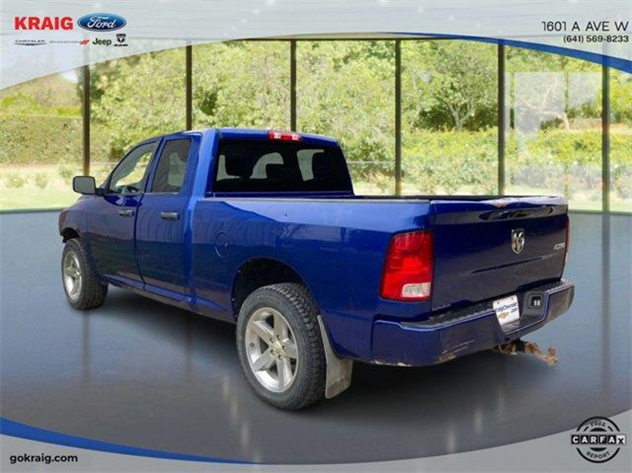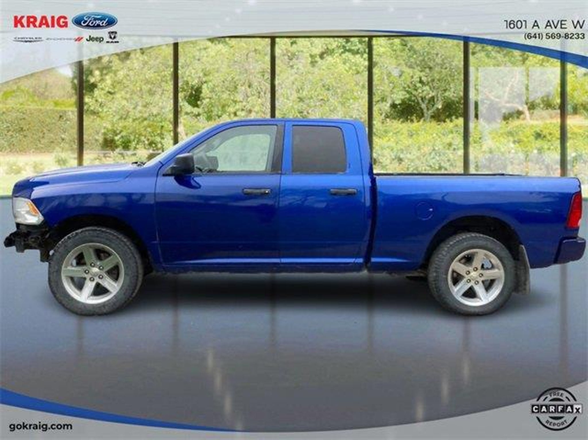 CARFAX One-Owner. Priced below KBB Fair Purchase Price!1-Year SiriusXM Radio Service, 17 x 7 Aluminum Wheels, 4-Wheel Disc Brakes, 40/20/40 Split Bench Seat, 5.0 Touchscreen Display, 6 Speakers, ABS brakes, Add Class IV Receiver Hitch, Air Conditioning, AM/FM radio, Audio Jack Input for Mobile Devices, Auto-dimming Rear-View mirror, Black Exterior Mirrors, Body Color Front Fascia, Body Color Grille, Body Color Rear Bumper w/Step Pads, Brake assist, Carpet Floor Covering, Center Hub, Charge Only Remote USB Port, Cloth 40/20/40 Bench Seat, Delay-off headlights, Delete Class IV Receiver Hitch, Delete Spray In Bedliner, Driver door bin, Dual front impact airbags, Dual front side impact airbags, Electronic Stability Control, Express Value Package, Exterior Mirrors w/Heating Element, For More Info, Call 800-643-2112, Front anti-roll bar, Front Armrest w/3 Cupholders, Front Center Armrest, Front Floor Mats, Front Fog Lamps, Front wheel independent suspension, Fully automatic headlights, GPS Antenna Input, Heated door mirrors, Heavy Duty Vinyl 40/20/40 Split Bench Seat, Integrated Voice Command w/Bluetooth, Low tire pressure warning, Manual Adjust Seats, Media Hub (USB, AUX), No Satellite Coverage w/AK/HI/PR/VI/GU, Occupant sensing airbag, Overhead airbag, Overhead Console, ParkView Rear Back-Up Camera, Passenger door bin, Power door mirrors, Power steering, Power windows, Quick Order Package 22J Express, Radio data system, Radio: 3.0, Radio: Uconnect 3 w/5 Display, Ram 1500 Express, Rear anti-roll bar, Rear Floor Mats, Rear Folding Seat, Rear step bumper, Rear View Day/Night Mirror, Remote Keyless Entry w/All-Secure, Remote USB Port, SiriusXM Satellite Radio, Speed control, Tachometer, Temperature & Compass Gauge, Tilt steering wheel, Traction control, Variably intermittent wipers, Voltmeter, Wheels: 20 x 8 Aluminum Chrome Clad.Blue Streak Pearlcoat 2018 Ram 1500 Express 4WD 8-Speed Automatic 3.6L V6 24V VVTAt Kraig Ford CDJR our vast selection of Pre-Owned vehicles along with competitive pricing and financing options equals great deals and savings for you!Kraig Ford CDJR is a family owned dealership and that is portrayed in the small town atmosphere of the dealership. The owner of the dealership, Craig Ford, is a veteran of the U.S. Army and proudly supports our troops and veterans.