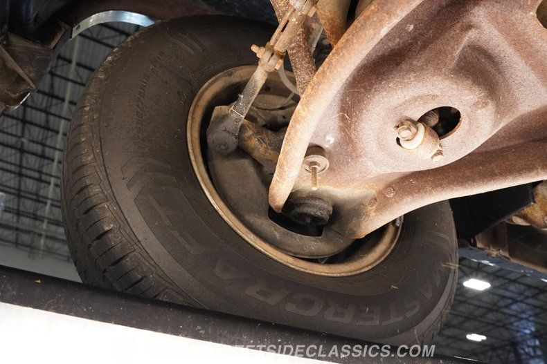 Like the interior, the drivetrain is believed to be original. The engine bay hosts a 5.7-liter V8 connected to a 4L60E 4-speed automatic transmission that links to an 8.5-inch 10-bolt rear axle. The front suspension is a stock independent setup with torsion bars, and the rear is stock with leaf springs. Fifteen-inch stock wheels are wrapped in 235/75R15 tires, and behind those are front power disc brakes and rear power drum brakes. The exhaust is a stock-style dual exhaust that runs into a stock muffler and exits as a single exhaust.