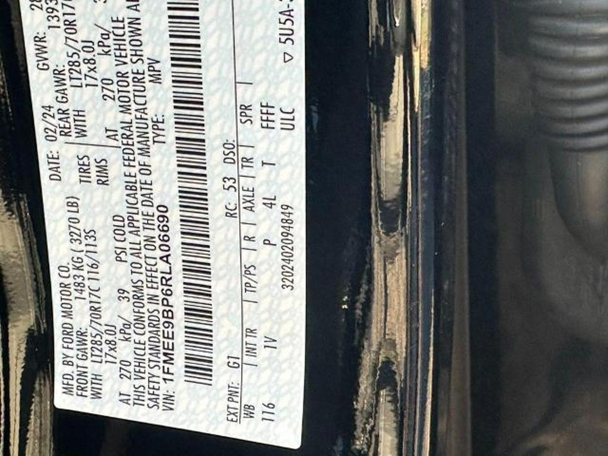 VIN 1FMEE9BP6RLA06690