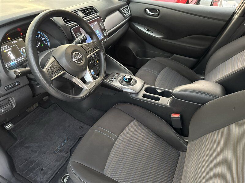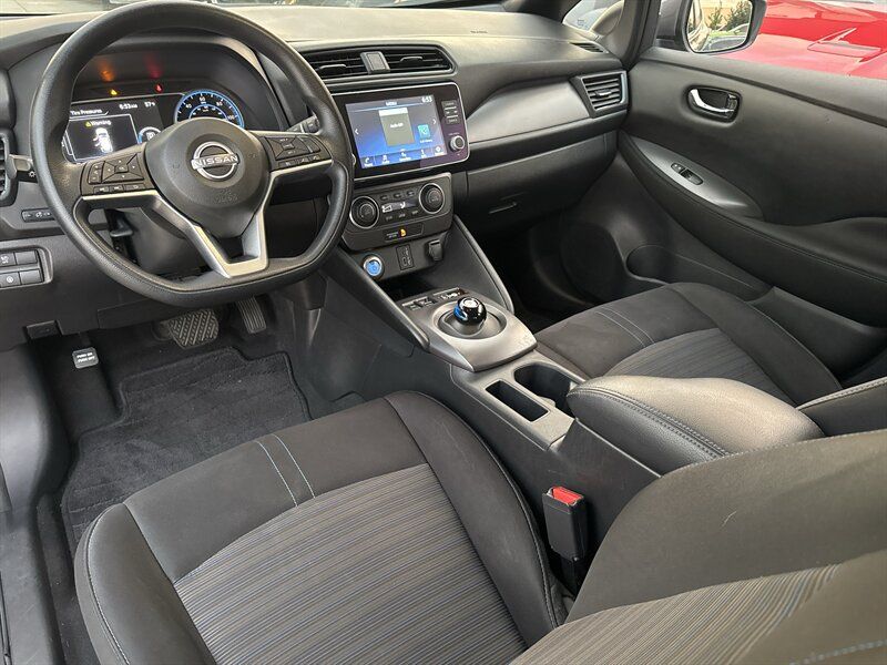 "*Vehicle subject to prior sale. We offer a ""First-Come, First-Served policy"" in order to be fair to all Customers. Price excludes government fees and taxes, or any optional accessories and custom upgrades installed by dealer. Applicable transfer fees and any shipping charges are due in advance of vehicle delivery and are separate from sales transactions. We make every effort to provide accurate and useful information, technical errors may appear from time to time, please call ahead and verify any details that are critical to your purchasing decision. We take pride in our one of a kind car buying experience, come see us today. -- INSTALLED FEATURES: Air filtration, Front air conditioning: automatic climate control, Front air conditioning zones: single, Airbag deactivation: occupant sensing passenger, Front airbags: dual, Knee airbags: dual front, Side airbags: front / rear, Side curtain airbags: front / rear, Antenna type: diversity / mast, Auxiliary audio input: Bluetooth / iPod/iPhone / jack / USB, Radio: AM/FM / touch screen display / voice operated, Radio data system, Satellite radio: SiriusXM, Speed sensitive volume control, Total speakers: 4, ABS: 4-wheel, Braking assist, Electronic brakeforce distribution, Front brake type: ventilated disc, Power brakes, Rear brake type: ventilated disc, Regenerative braking system, Floor material: cargo area carpet / carpet, Steering wheel trim: urethane, Assist handle: passenger side / rear, Cargo area light, Center console: front console with armrest and storage, Cruise control, Cupholders: front, Multi-function remote: panic alarm / proximity entry system, One-touch windows: 1, Overhead console: front, Power outlet(s): 12V front / USB front / USB rear / USB-C front, Power steering: variable/speed-proportional, Power windows: lockout button, Push-button start, Reading lights: front, Rearview mirror: manual day/night, Steering wheel: telescopic, Steering wheel mounted controls: audio / cruise control / phone / voice control, Storage: door pockets / front seatback / sunglasses holder, Vanity mirrors: dual, Door handle color: chrome, Front bumper color: body-color, Grille color: black, Mirror color: body-color, Rear bumper color: body-color, Rear spoiler: roofline, Rear spoiler color: black, Rear trunk/liftgate: liftgate, Window trim: black, Connected in-car apps: Facebook, Infotainment: NissanConnect, Infotainment screen size: 8 in., Smartphone integration: Android Auto / Apple CarPlay, Clock, Digital odometer, External temperature display, Fuel economy display: range, Instrument cluster screen size: 7 in., Multi-function display, Trip odometer, Warnings and reminders: low battery, Daytime running lights, Headlights: auto delay off / auto high beam dimmer / auto on/off / halogen, Side mirror adjustments: manual folding / power, Battery saver, Bi-directional charging capable, Drive mode selector, Electric charge cord: 120 volt / 240 volt, Electric motor battery type: lithium ion, Electric motor charger: DC fast charging, Electric motor charger connector: CHAdeMO / SAE J1772, Electric motor charging time (240V): 8 hours, Electric motor miles per charge: 150, EV battery capacity: 40 kWh, EV on-board charger rating: 6.6 kW, Automatic emergency braking: front / front pedestrian / rear, Blind spot safety: sensor/alert, Camera system: rearview, Check rear seat reminder, Child safety door locks, Child seat anchors: LATCH system, Cross traffic alert: rear, Crumple zones: front / rear, Lane deviation sensors, Lane keeping assist, Lane keeping assist with blind spot integration, Pre-collision warning system: audible warning / pedestrian detection / visual warning, Rearview monitor: in dash, Emergency locking retractors: front / rear, Front seatbelts: 3-point, Rear seatbelts: 3-point, Seatbelt force limiters: front, Seatbelt pretensioners: front / rear, Seatbelt warning sensor: front, Driver seat manual adjustments: 6 / height / reclining, Front headrests: 2 / adjustable, Front seat type: bucket, Passenger seat manual adjustments: 4 / reclining, Rear headrests: 2 / adjustable, Rear seat folding: split, Rear seat type: 60-40 split bench, Upholstery: cloth, Upholstery accents: contrast stitching, Anti-theft system: alarm / vehicle immobilizer, Power door locks: anti-lockout / auto-locking, Hill holder control, Stability control, Traction control, Front shock type: gas, Front spring type: coil, Front stabilizer bar, Front struts: MacPherson, Front suspension classification: independent, Front suspension type: lower control arms, Rear shock type: gas, Rear spring type: coil, Rear stabilizer bar, Rear suspension classification: semi-independent, Rear suspension type: torsion beam, Electronic messaging assistance: with read function, Hands-free phone call integration: voice operated, Wireless data link: Bluetooth, Spare tire kit: inflator kit / tire sealant, Tire Pressure Monitoring System, Wheel covers: full, Wheels: steel, Front wipers: variable intermittent, Liftgate window: fixed, Power windows: remotely operated, Rear wiper: intermittent / with washer, Solar-tinted glass: front, Window defogger: rear"