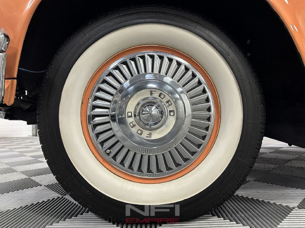In 2021, after the car was moved to Pennsylvania, it underwent a significant round of mechanical and cosmetic refurbishment, highlighted by it's original 312 V8 engine rebuilt with electronic fuel injection. The engine overhaul included a new 312 high-lift camshaft, solid valve lifters, pushrods, and oil pump, along with a new timing chain, cam and crank sprockets, and timing gear key. The work continued with a full engine gasket kit, a harmonic balancer seal repair sleeve, and a new rear transmission seal. Both the front and rear engine mounts were replaced, as were the steady-rest grommets and hardware, and the engine was refinished in proper Ford Red/Orange. The cooling system received a 170-degree thermostat, a 6-blade fixed fan, and fresh gaskets, while the heater system benefited from a new heater core, gasket set, heater air chamber, heater valve, blower motor, and the dash control cable. Electrical updates included a remanufactured 12-volt starter and drive, an Ignitor 57 electronic ignition conversion, a tach-drive distributor and coil, a temperature sender, and a new dash wiring harness grommet. The exhaust system was renewed with fresh manifold gaskets and a complete aluminized exhaust including piping, muffler, clamps, and hangers.