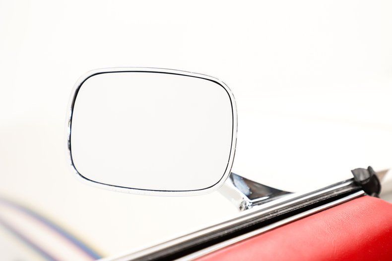 INTERIOR: The red pops! Inside this car is in outstanding condition, mostly replaced. Fresh red carpet and reproduction mats on the floor. The console looks new and has the correct T-handle on the Hurst shifter. The seats were recushioned and upholstered. Door panels and armrests were replaced. The dash pad looks new, the instrument panel is excellent and it features factory gauges and tachometer. The radio is upgraded with a retro stereo with 6x9s in back. A new deluxe wheel is on a tilt column. The headliner and visors were replaced.