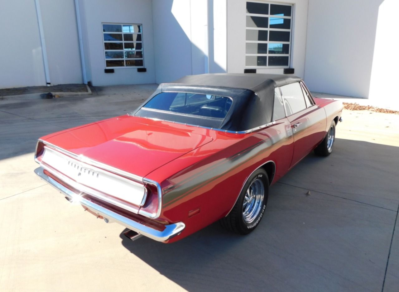 Gateway Classic Cars of Charlotte is excited to digitally present this 1969 Plymouth Barracuda Convertible, a true classic that embodies the spirit of American muscle. This vintage beauty boasts a striking red exterior that totally complements its sleek black convertible top and matching black interior, creating a timeless look that is sure to turn heads wherever you go. Under the hood, you'll find a powerful 340 V8 engine paired with an automatic transmission, offering a driving experience that is both exhilarating and smooth. This Barracuda comes equipped with a range of features that enhance both its performance and comfort. The automatic convertible top allows you to effortlessly enjoy open-air cruising, while the power brakes and power steering provide added control and ease of handling. The vehicle is fitted with radial tires and Crager rims, ensuring a stable and stylish ride. Inside, the vinyl interior offers a classic feel, and seatbelts are included for added safety. Performance enthusiasts will appreciate the 8.75 rear end with a 3.23 gear ratio, delivering a balanced blend of power and efficiency. The Wilwood power disc brake system provides reliable stopping power, complementing the robust performance of the 340 V8 engine. Additionally, the 4-barrel OE style carburetor enhances the engine's responsiveness and power output. For those who appreciate classic audio, this Barracuda is equipped with an AM radio, allowing you to enjoy the nostalgic sounds of the past as you cruise down the road. This 1969 Plymouth Barracuda Convertible is more than just a car; it's a piece of automotive history that offers a unique blend of style, performance, and classic charm.