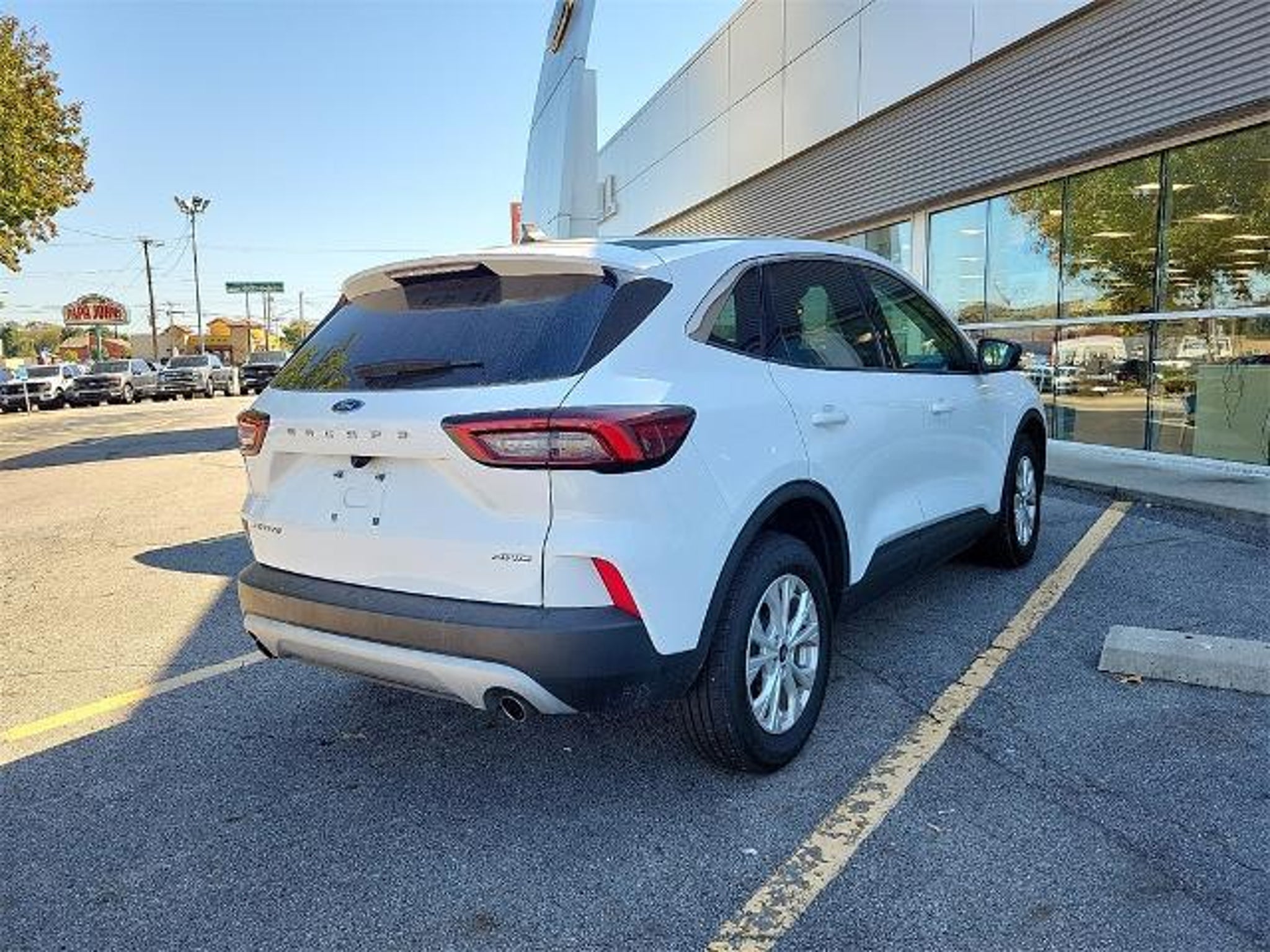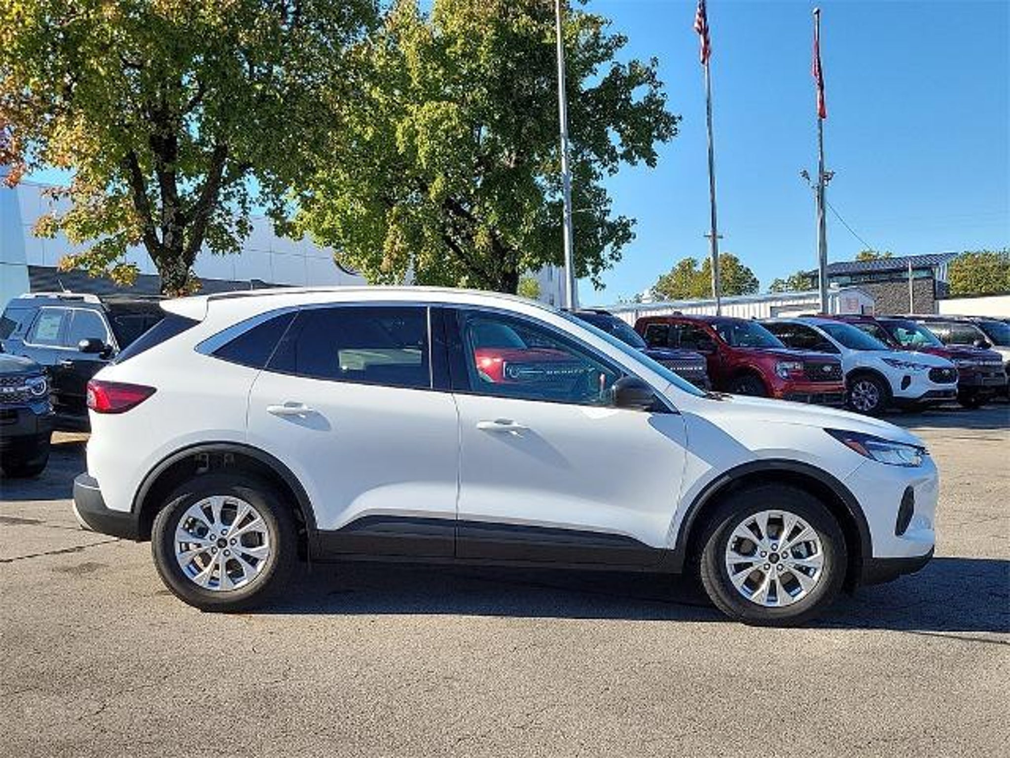 3.81 Axle Ratio, 4-Wheel Disc Brakes, 6 Speakers, ABS brakes, Air Conditioning, Alloy wheels, AM/FM radio: SiriusXM, AM/FM Stereo, Auto High-beam Headlights, Automatic temperature control, Brake assist, Bumpers: body-color, Compass, Delay-off headlights, Driver door bin, Driver vanity mirror, Dual front impact airbags, Dual front side impact airbags, Electronic Stability Control, Emergency communication system: SYNC 4 911 Assist, Equipment Group 200A, Exterior Parking Camera Rear, FordPass Connect, Four wheel independent suspension, Front anti-roll bar, Front Bucket Seats, Front Center Armrest, Front dual zone A/C, Front License Plate Bracket, Front reading lights, Fully automatic headlights, Heated door mirrors, Heated front seats, Heated steering wheel, Illuminated entry, Knee airbag, Low tire pressure warning, Occupant sensing airbag, Outside temperature display, Overhead airbag, Overhead console, Panic alarm, Passenger door bin, Passenger vanity mirror, Power door mirrors, Power driver seat, Power Liftgate, Power steering, Power windows, Radio data system, Rear anti-roll bar, Rear reading lights, Rear seat center armrest, Rear window defroster, Rear window wiper, Remote keyless entry, Speed control, Speed-sensing steering, Speed-Sensitive Wipers, Split folding rear seat, Spoiler, Steering wheel mounted audio controls, SYNC 4, Tachometer, Telescoping steering wheel, Tilt steering wheel, Traction control, Trip computer, Unique Cloth Front Bucket Seats, Variably intermittent wipers, Wheels: 17 Shadow Silver-Painted Aluminum. Oxford White 2023 Ford Escape Active AWD 8-Speed Automatic 1.5L EcoBoost We're the 4th Oldest Ford Dealership in America!!! 26/32 City/Highway MPG