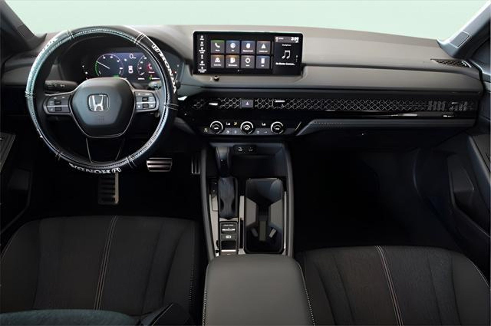 Remote Keyless Entry, Rear Camera, Power Moonroof, Auto Climate Control, Bluetooth, Heated Side Mirrors, Lane Departure Warning, Forward Collision Warning, Adaptive Cruise Control, 19 Wheels, ABS brakes, Active Cruise Control, Alloy Wheels, Compass, Electronic Stability Control, Front dual zone A/C, Illuminated entry, Low tire pressure warning, Power moonroof, Remote keyless entry, Traction control. Odometer is 24969 miles below market average! CARFAX One-Owner. Clean CARFAX. White Honda Accord Hybrid 2024 FWD eCVT 2.0L 16V DOHC 46/41 City/Highway MPG ABS brakes, Active Cruise Control, Alloy Wheels, Compass, Electronic Stability Control, Front dual zone A/C, Illuminated entry, Low tire pressure warning, Power moonroof, Remote keyless entry, Traction control, 4-Wheel Disc Brakes, 8 Speakers, Adaptive Cruise Control: Adaptive Cruise Control (ACC) with Low-Speed Follow, Air Conditioning, AM/FM radio, Apple CarPlay/Android Auto, Auto High-beam Headlights, Automatic temperature control, Blind Spot Information (BSI) System warning, Brake assist, Bumpers: body-color, Delay-off headlights, Driver door bin, Driver vanity mirror, Dual front impact airbags, Dual front side impact airbags, Emergency communication system: HondaLink, Exterior Parking Camera Rear, Fabric Seat Trim, Four wheel independent suspension, Front anti-roll bar, Front Bucket Seats, Front Center Armrest, Front reading lights, Fully automatic headlights, Knee airbag, Lane departure: Lane Keeping Assist System (LKAS) active, Leather Shift Knob, Leather steering wheel, Occupant sensing airbag, Outside temperature display, Overhead airbag, Overhead console, Panic alarm, Passenger door bin, Passenger vanity mirror, Power door mirrors, Power driver seat, Power steering, Power windows, Radio data system, Radio: 180-Watt Audio System, Rear anti-roll bar, Rear reading lights, Rear seat center armrest, Rear side impact airbag, Rear window defroster, Security system, Speed control, Speed-sensing steering, Speed-Sensitive Wipers, Split folding rear seat, Spoiler, Steering wheel mounted audio controls, Telescoping steering wheel, Tilt steering wheel, Trip computer, Variably intermittent wipers, and Wheels: 19 x 8.5J Berlina Black.