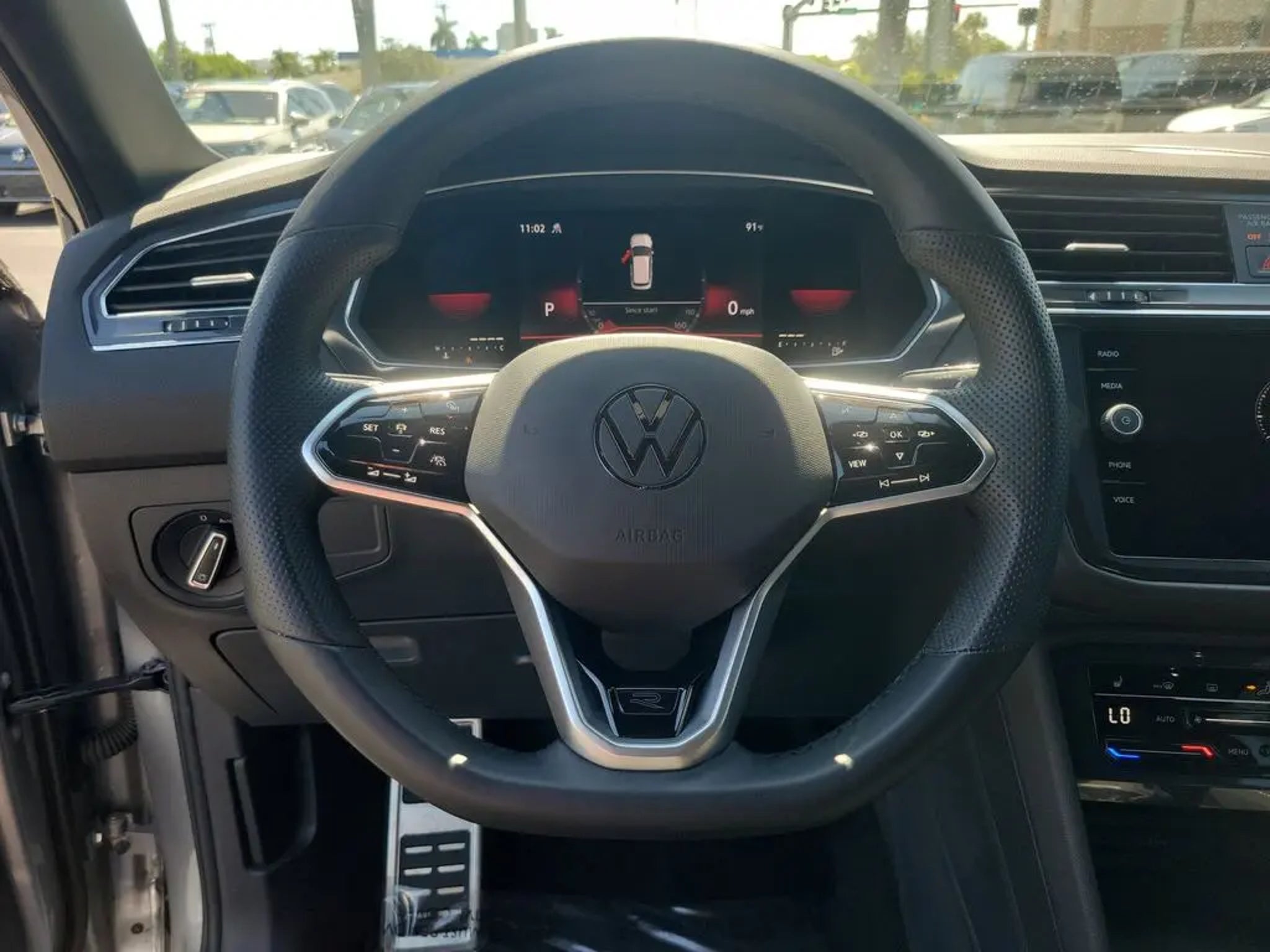 Certified. Pyrite Silver Metallic 2022 Volkswagen Tiguan 2.0T SE R-Line Black CARFAX One-Owner. Odometer is 30279 miles below market average! Volkswagen Certified Pre-Owned Details: * Roadside Assistance * 100 Point Inspection * Model Year 2020 and Newer Vehicles: 2-Year or 24,000-Mile (whichever occurs first) Comprehensive Limited Warranty. Model Year 2019 Vehicles: 1-Year or 12,000-Mile (whichever comes first) Comprehensive Limited Warranty. Electric Vehicles Model Year 2019 & Newer: 3-Year or 36,000-Mile (whichever comes first) Comprehensive Limited Warranty. 2 Years of 24-Hour Roadside Assistance, Three Months of SiriusXM Platinum Plan Trial Subscription. * Warranty Deductible: $50 * Vehicle History 21/28 City/Highway MPG Equipped with 3.33 Axle Ratio, 4-Wheel Disc Brakes, 4-Wheel Independent Suspension, 6 Speakers, ABS brakes, Air Conditioning, Alloy wheels, AM/FM radio: SiriusXM with 360L, Auto-dimming Rear-View mirror, Automatic temperature control, Brake assist, Bumpers: body-color, Compass, Delay-off headlights, Driver door bin, Driver vanity mirror, Dual front impact airbags, Dual front side impact airbags, Electronic Stability Control, Emergency communication system: Car-Net, Exterior Parking Camera Rear, Four wheel independent suspension, Front anti-roll bar, Front Bucket Seats, Front Center Armrest, Front dual zone A/C, Front reading lights, Fully automatic headlights, Heated door mirrors, Heated Front Comfort Seats, Heated front seats, Illuminated entry, Leather Shift Knob, Leather steering wheel, Low tire pressure warning, Occupant sensing airbag, Outside temperature display, Overhead airbag, Overhead console, Panic alarm, Passenger door bin, Passenger vanity mirror, Perforated V-Tex Leatherette Seating Surfaces, Power door mirrors, Power driver seat, Power Liftgate, Power moonroof, Power steering, Power windows, Radio data system, Radio: MIB3 Composition Media AM/FM/HD, Rain sensing wipers, Rear anti-roll bar, Rear reading lights, Rear seat center armrest, Rear window defroster, Rear window wiper, Remote keyless entry, Roof rack: rails only, Security system, Speed control, Speed-sensing steering, Split folding rear seat, Spoiler, Sport steering wheel, Steering wheel mounted audio controls, Tachometer, Telescoping steering wheel, Tilt steering wheel, Traction control, Trip computer, Turn signal indicator mirrors, Variably intermittent wipers, and Wheels: 19 Black Twin 5-Spoke Alloy. Sale price shown excludes $989.00 Predelivery Service Charge, $395.00 Electronic Registration Filing Fee, all government fees, registration fees, titling fees, and Sales Tax VAUTO USED.
