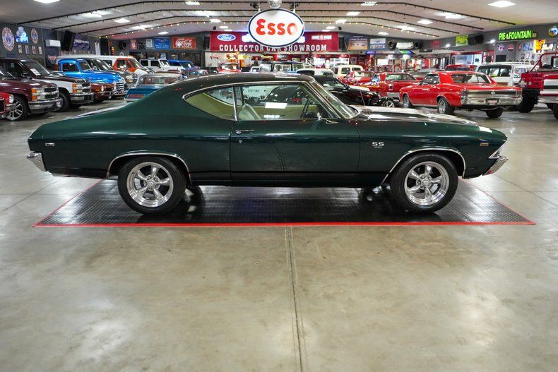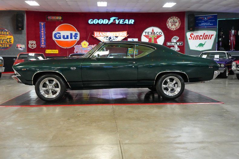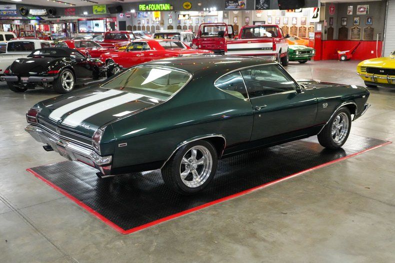 This 1969 Chevrolet Chevelle delivers classic muscle with modern driving confidence. Under the hood is a powerful 396 Big Block Chevy V8 paired with a Muncie 4-speed manual transmission and a stout GM 12-bolt rear end with 3.55 gearing. Equipped with power steering, power brakes, and front disc brakes, it's built for both performance and control. The car rides on 17" American Racing Torq Thrust wheels wrapped in BFGoodrich Advantage tires, while the Edelbrock intake, 600 CFM carb, and MSD HEI ignition boost performance. Finished in Green with White Stripes, this Chevelle combines iconic style with raw power. THIS VEHICLE QUALIFIES FOR FREE SHIPPING AND A WARRANTY!!