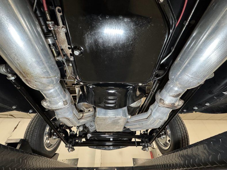 That fuel heads to the exposed 350ci ZZ1 V8 with aluminum heads, a Holley 4-barrel carburetor, GM aluminum intake, and coated headers, all ingredients of a recipe that develops 300 horsepower. It's mated to a TCI TH350 3-speed automatic transmission that sends power to the Ford 9" rear with 4.11 gears with Positraction. As an engine visible to the world, it's appropriately clean and showy! The car operates on a 12 volt system.