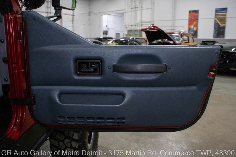 GR Auto Gallery is pleased to present this highly-equipped and trail-ready 1998 Jeep Wrangler for your consideration. Finished in striking Chili Pepper Red Pearl over a clean Black interior, this Wrangler has been extensively upgraded for both power and capability. Under the hood sits a Summit Racing 350 HO V8, paired with a 700R4 automatic transmission and supported by a Superior radiator and 205 transfer case. The drivetrain is fully built, featuring a rebuilt Dana 60 rear axle with 4.56 gears, Alloy axle shafts, and a Detroit Locker, while up front a rebuilt Dana 44 hosts RCV axles, ARB Air Locker, and matching 4.56 gearing. Additional off-road hardware includes trail-ready bead-lock wheels wrapped in 37x12.5R17 tires, 6-inch BDS long-arm suspension with Fox shocks, Warn winch, Warn rocker guards, and Warn front and rear bumpers with tire rack. Comfort and function upgrades include Corbeau front seats with harnesses, MasterTwill top, BedRug front and rear carpet, Auto Meter RPM gauge, Kenwood stereo, KC lights, and on-board ARB air. This Jeep is dialed in for all terrain and built for those who demand both capability and reliability. Drive this one out of our showroom or have us assist with shipping it to you anywhere in the United States! Don't hesitate to call us with any questions or for more information.