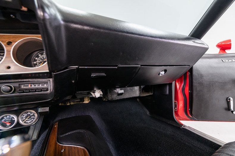 Based on the data tag, the 'Cuda was delivered from the factory with a 383ci-4V 'Wedge' and Torqueflite automatic transmission. Horsepower is now furnished by a 426ci Hemi 'Elephant'. We do not have history on the engine, but it is fitted with dual 4-barrel carburetors and a 'Shaker Hood'. The transmission is now a Tremec 5-speed manual gearbox w/pistol grip shifter and torque is delivered to a posi-traction differential. The chassis is equipped with power steering, power disc/drum brakes and MOPAR Rallye wheels mount BFGoodrich Radial T/A tires.