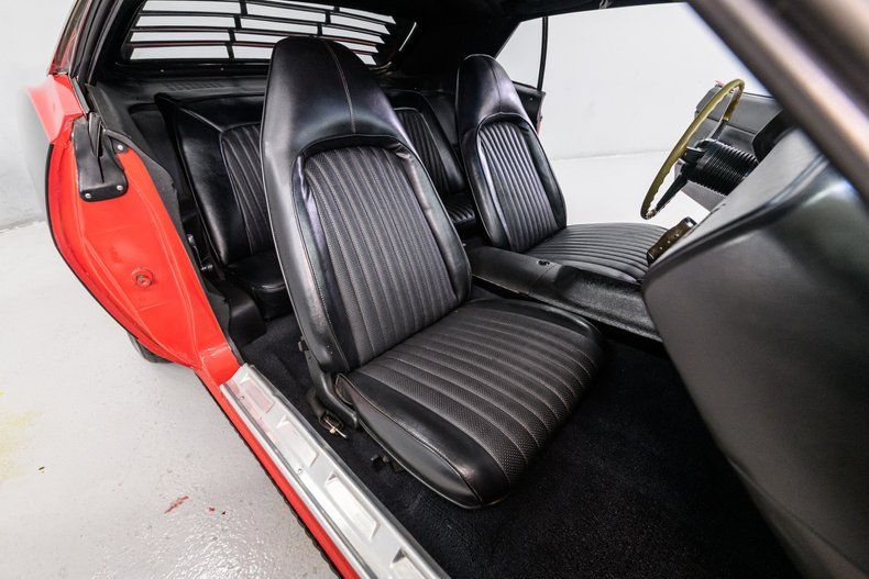 The interior has also been refreshed - black vinyl upholstery, headliner carpeting and door cards are all in fine shape. It is equipped with bucket seats, center console, gauge package and an AM sound system.