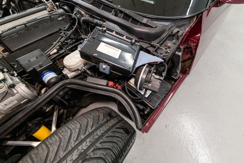 This 1993 Corvette C4 coupe has been cared for by its current owner for the last 17 years. It is fully equipped with the Preferred Equipment Package and 40th Anniversary Appearance Package (factory window sticker is included). The Ruby Red Metallic exterior has been refinished and is in overall good condition but does have a few blemishes.