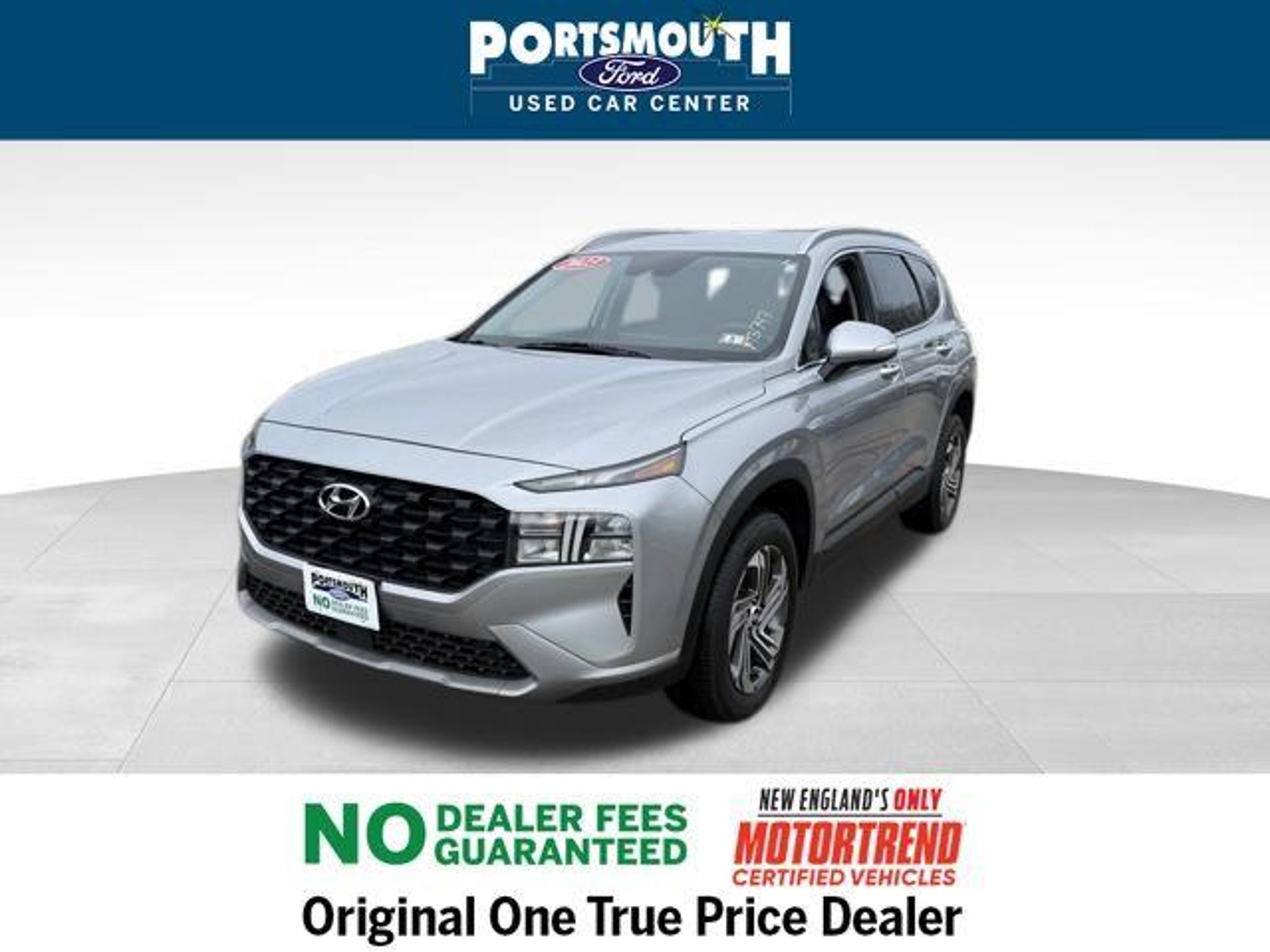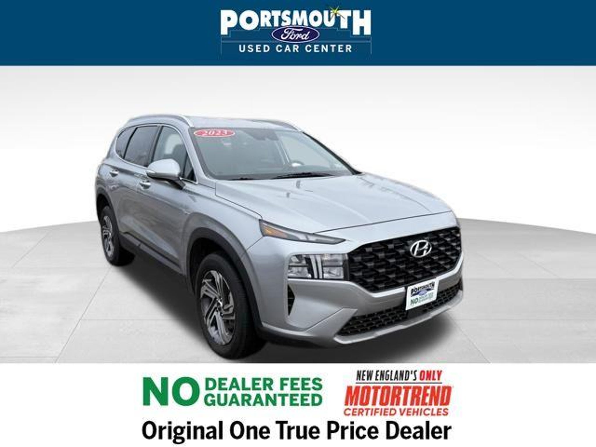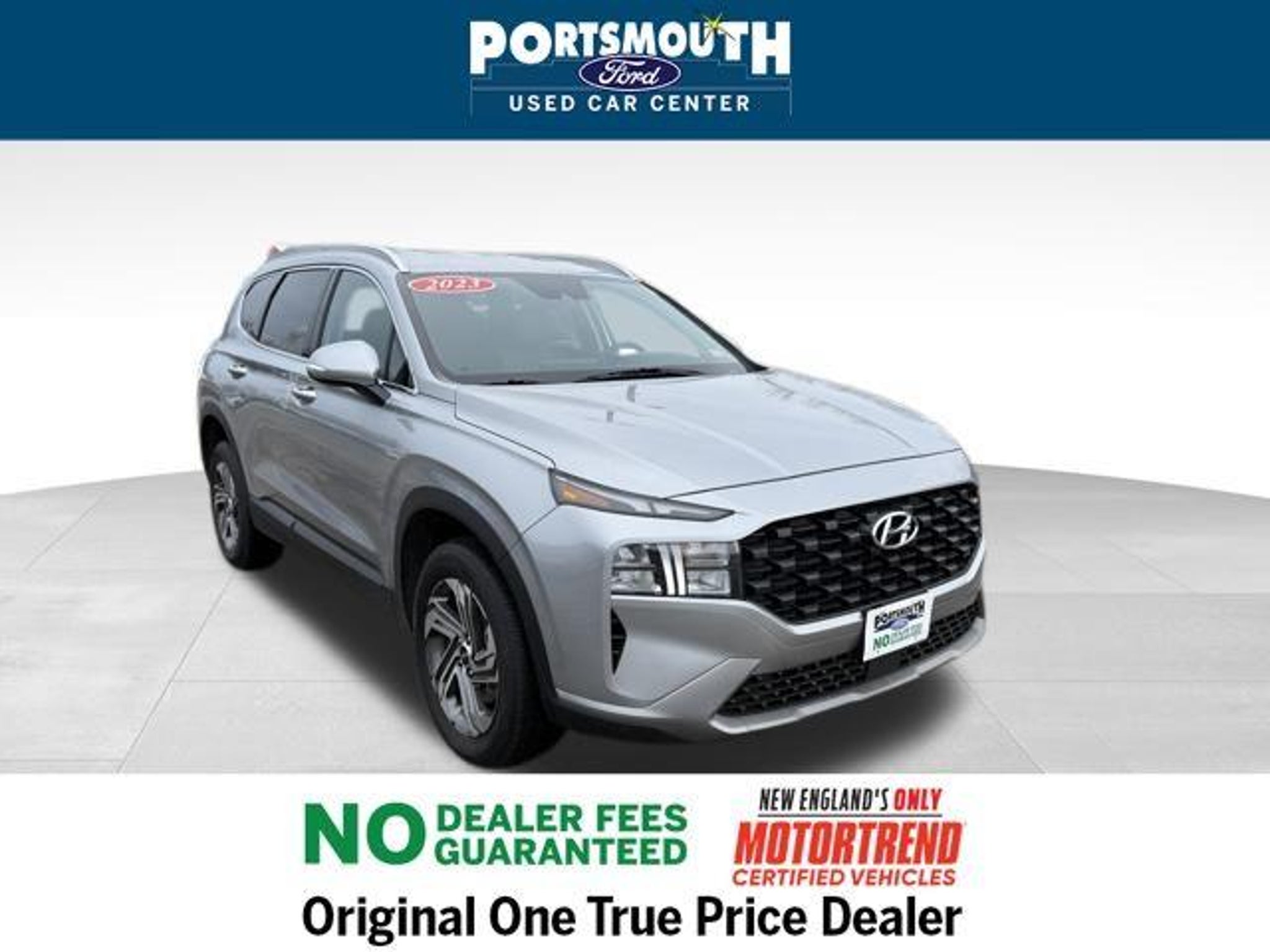 2023 Hyundai Santa Fe SEL Clean CARFAX. AWD Shimmering Silver Pearl 8-Speed Automatic with SHIFTRONIC 2.5L I4 Certification Program Details: 6 MONTH / 7,500 MILE COMPREHENSIVE LIMITED WARRANTY 12 MONTH EASYCARE SELECT PLUS - WINDSHIELD REPAIR - ROAD HAZARD PROTECTION - COSMETIC WHEEL REPAIR - ROADSIDE ASSISTANCE -COMPLIMENTARY 1ST OIL CHANGE -$500 TRADE IN VALUE GUARANTEE -72 HOUR EXCHANGE POLICY ( MAXIMUM 300 MILES DRIVEN) -BEST VALUE GUARANTEE Motor Trend Certified --6 MONTH / 7,500 MILE LIMITED WARRANTY --PORTSMOUTH FORD ADVANTAGE 1 YEAR FREE -- WINDSHIELD REPAIR -- COSMETIC WHEEL REPAIR -- ROAD HAZARD PROTECTION -- ROADSIDE ASSISTANCE --KEY REPLACEMENT --PAINTLESS DENT REPAIR --COMPLIMENTARY 1st OIL CHANGE --72 HOUR EXCHANGE POLICY (MAX 300 MILES) OUR BEST PRICE PRACTICE TO ALL CUSTOMERS SINCE 1992!! We are the Original One True Price Dealer. NO DEALER FEES!!! NO PREP FEES!!! NO 3rd party Buying fees!!! Call us at 1-603-431-2822 or visit us on the web at www.portsmouthusedcarcenter.com.