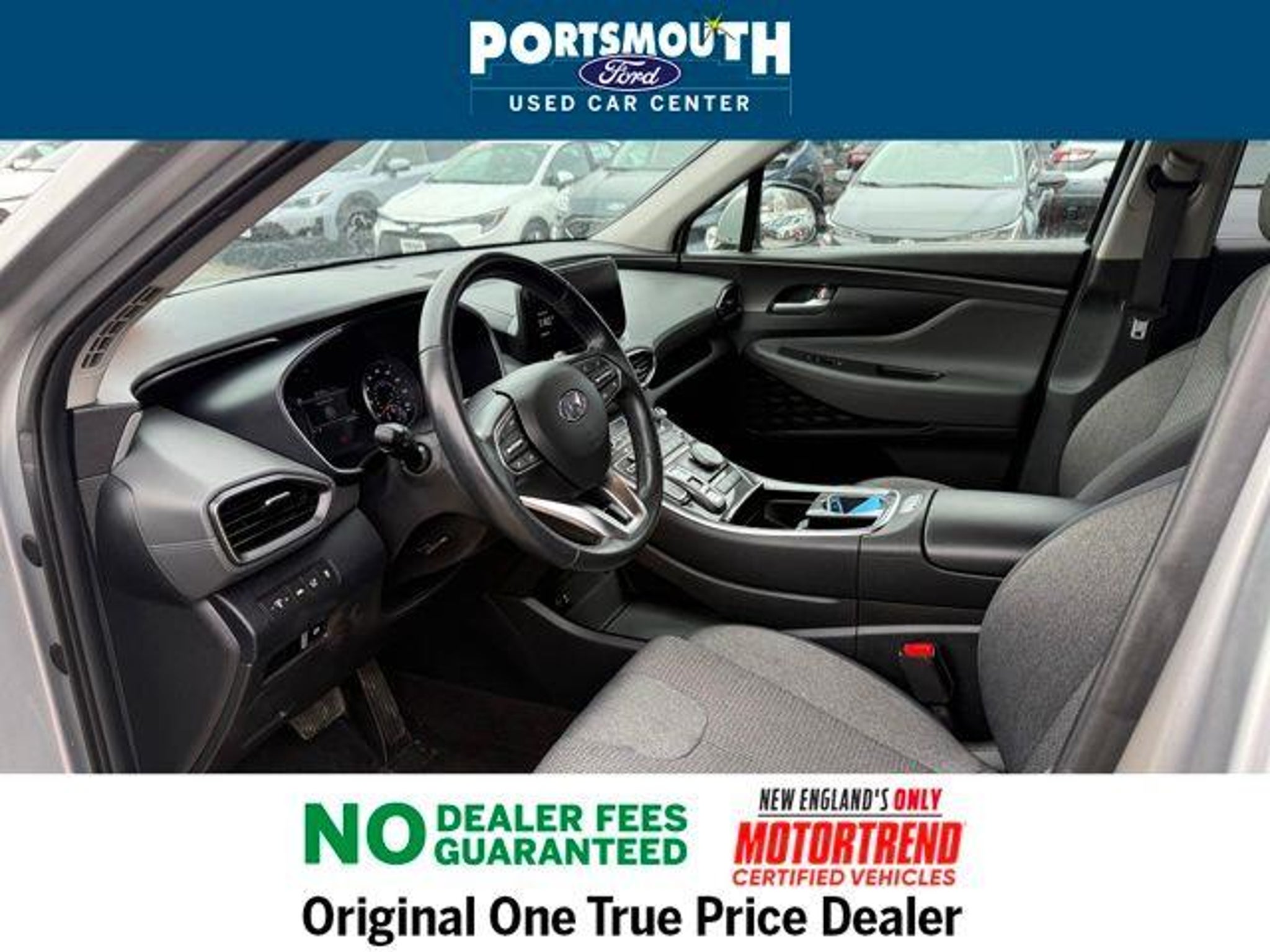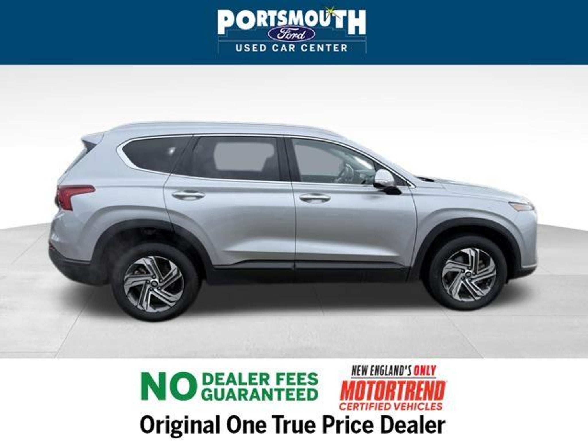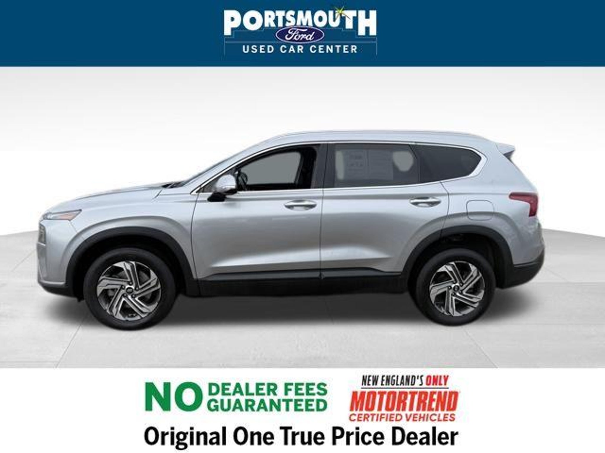 2023 Hyundai Santa Fe SEL Clean CARFAX. AWD Shimmering Silver Pearl 8-Speed Automatic with SHIFTRONIC 2.5L I4 Certification Program Details: 6 MONTH / 7,500 MILE COMPREHENSIVE LIMITED WARRANTY 12 MONTH EASYCARE SELECT PLUS - WINDSHIELD REPAIR - ROAD HAZARD PROTECTION - COSMETIC WHEEL REPAIR - ROADSIDE ASSISTANCE -COMPLIMENTARY 1ST OIL CHANGE -$500 TRADE IN VALUE GUARANTEE -72 HOUR EXCHANGE POLICY ( MAXIMUM 300 MILES DRIVEN) -BEST VALUE GUARANTEE Motor Trend Certified --6 MONTH / 7,500 MILE LIMITED WARRANTY --PORTSMOUTH FORD ADVANTAGE 1 YEAR FREE -- WINDSHIELD REPAIR -- COSMETIC WHEEL REPAIR -- ROAD HAZARD PROTECTION -- ROADSIDE ASSISTANCE --KEY REPLACEMENT --PAINTLESS DENT REPAIR --COMPLIMENTARY 1st OIL CHANGE --72 HOUR EXCHANGE POLICY (MAX 300 MILES) OUR BEST PRICE PRACTICE TO ALL CUSTOMERS SINCE 1992!! We are the Original One True Price Dealer. NO DEALER FEES!!! NO PREP FEES!!! NO 3rd party Buying fees!!! Call us at 1-603-431-2822 or visit us on the web at www.portsmouthusedcarcenter.com.