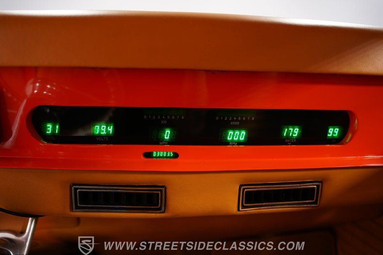 Prop open that steel hood, and you're treated to a clean and full engine bay featuring a 350 cubic-inch Ram Jet V-8 engine that utilizes the aforementioned EFI on the intake side, while a set of shorty headers eliminates spent gases via a dual exhaust capped off with Xcelerator mufflers. That power is routed through a 700R4 three-speed automatic transmission before being sent out to the nine-inch rear end which transfers those ponies to the pavement via a set of staggered chrome five-spoke rims measuring 16 inches up front and 17 inches in the rear.