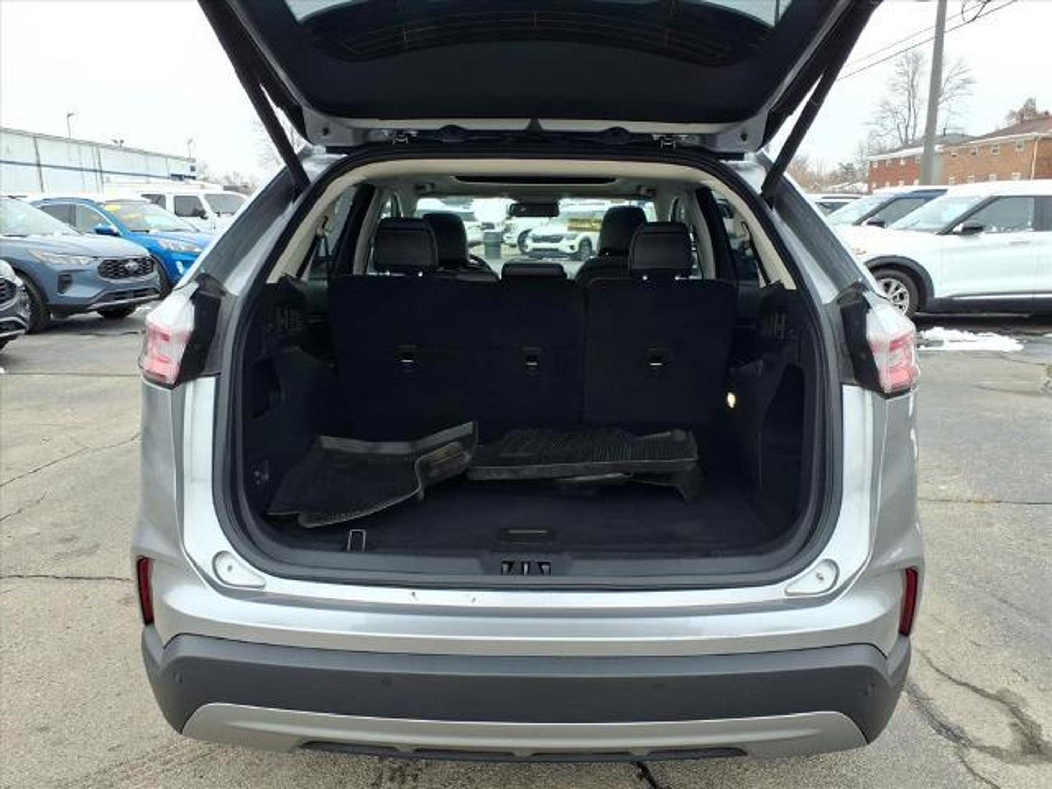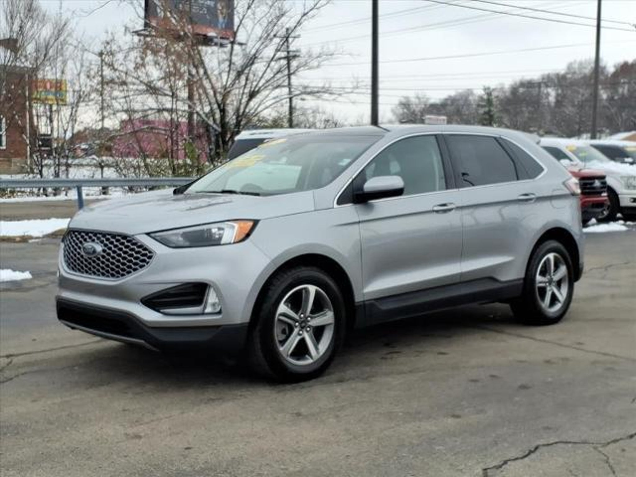 This vehicle is a 2024 Ford Edge SEL Crossover all wheel drive with a 2.0 liter 4 cylinder engine and turbocharged power. It has driven 29,571 miles and has a silver exterior. It has a fuel economy of 21 mpg in the city and 28 mpg on the highway, making it an efficient choice for those looking to save on gas. It also has a black interior and crash test rating of 5 out of 5 stars, making it safe for any driver. This vehicle also comes with a number of features such as touch screen display, Bluetooth audio connection, blind spot sensor, hill start assist, on demand four wheel drive, Bluetooth phone connectivity, and leather seats. A carfax report is available for this vehicle as well, making it an even more reliable option for those looking to purchase. Contact Details: Town and Country Ford - Louisville, 6015 Preston Hwy, Louisville, KY, 40219, tbradley@tacford.com, (502) 964-8131.