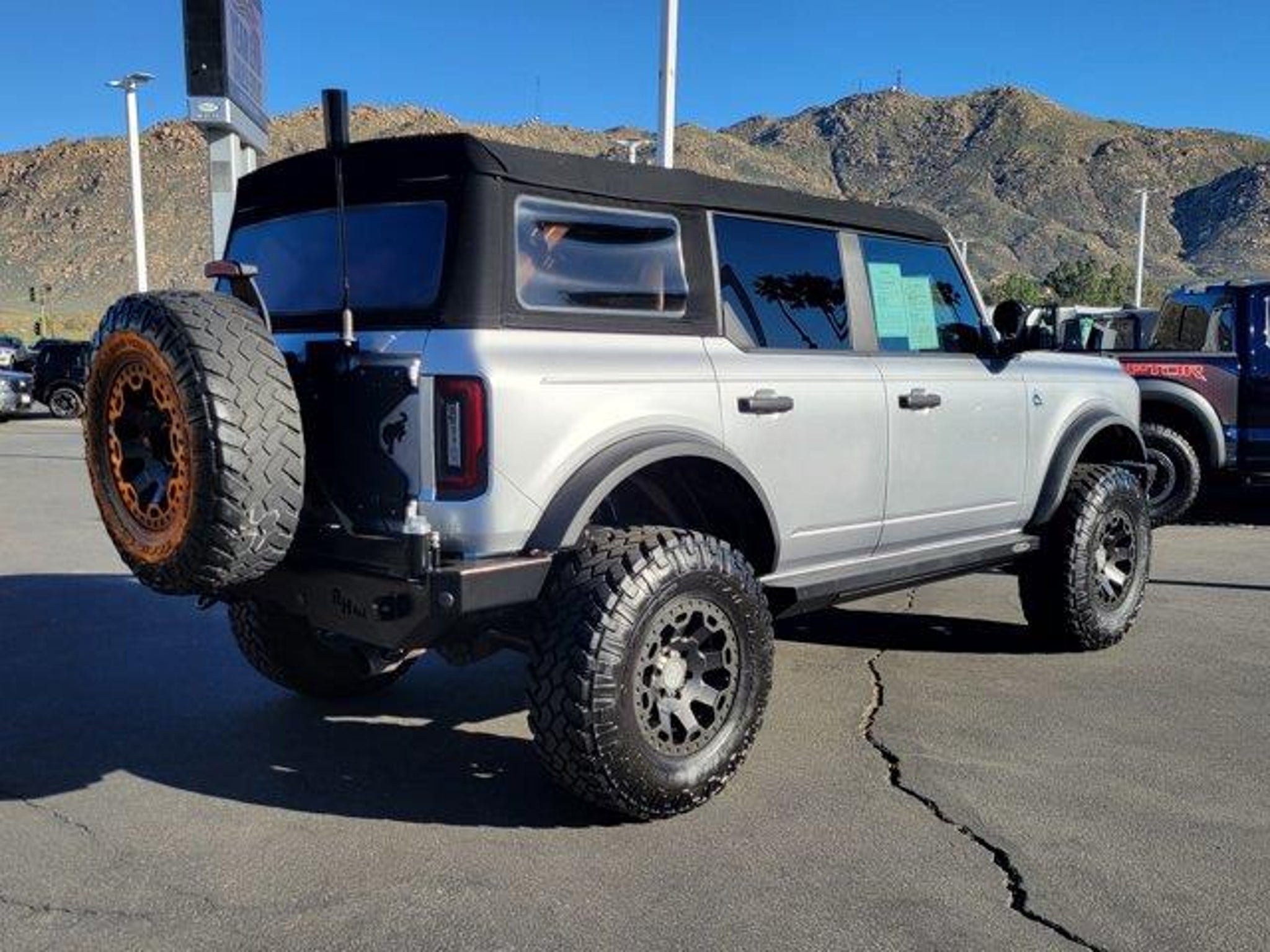 If your idea of a good time includes dirt in your teeth, mud on your boots, and a trail that makes your friends say, Uh are you sure about this? then this 2021 Ford Bronco Black Diamond 4WD is the adventure buddy you?ve been dreaming of.Built for real off-road fun (not the I drove over a speed bump today crowd), the Black Diamond packs marine-grade vinyl seats, wash-out rubber flooring, skid plates basically everything you need to get dirty and keep smiling. It?s rugged enough for camping, fishing, hunting, light-to-moderate trails, and everyday commuting when you?re forced to rejoin civilization.But THIS Bronco? Check this out It?s been leveled up like a video game character. Outfitted with a Rock Hard Patriot Series rear bumper with locking tire carrier, Black Rhino 17 wheels wrapped in beefy 35 Grapplers, Rock Slide Engineering step sliders, Rough Country nudge bumper with LED lights, aftermarket lift kit, KC HiLites pods, WisdomPro roof storage, and a 4.46 final drive with rear locker this thing isn?t off-road capable. It is absolutely off-road encouraged.Inside, you still get SYNC 4, Apple CarPlay/Android Auto, an 8 touchscreen, pre-collision assist, and a rear camera because even the wildest Broncos can be civilized. Fresh oil change, SoCal owned, and a squeaky clean CARFAX to boot. Good-looking. In demand. Hotter than a July trail ride.Don?t wait for the next adventure create it. Race to Raceway Ford TODAY and claim this Bronco Black Diamond before someone else takes the road less travelled with it!At Raceway Ford, you can shop stress-free with our 3-Day Exchange Policy because we believe you should love what you drive! Come visit our massive inventory and find the perfect vehicle for you. Whether you're in Redlands, San Bernardino, Fontana, Ontario, or anywhere in the Inland Empire, we're just a quick drive away conveniently located right off the 215 and 60 freeways on the east edge of Riverside, next to Moreno Valley. You can?t miss us we?re the GIANT Ford Dealership that?s been Southern California Proud -Since 1989- 36 years and counting! Don?t wait stop by today and drive off with confidence at Raceway Ford!