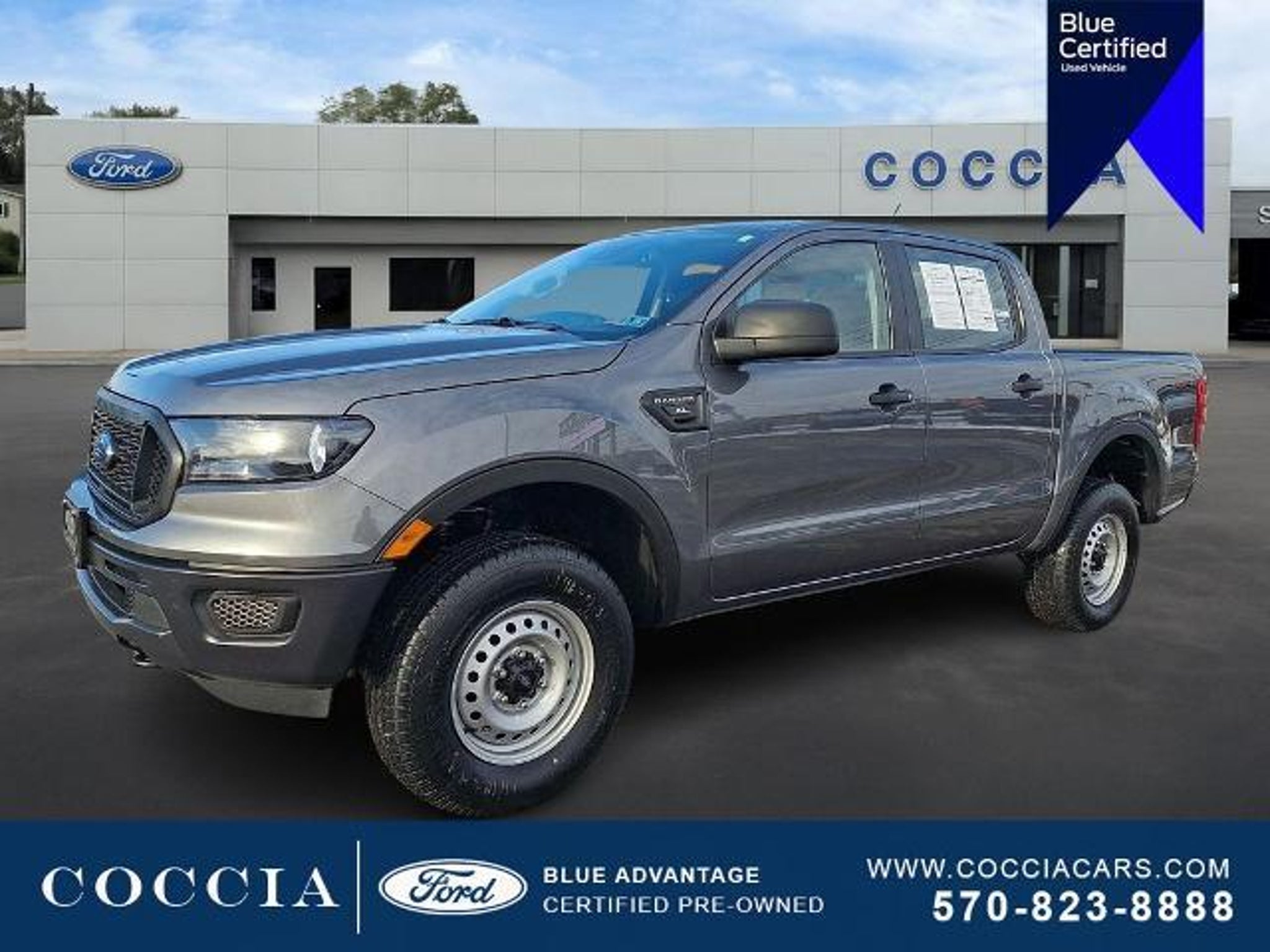 COCCIA Ford is home to the areaâs best selection of new Ford Vehicles. Allow our experienced sales consultants guide you through your next vehicle purchase. Convenient Saturday Service Hours. Complimentary Car Wash with every visit. Free inspections for the life of your Vehicle. COCCIA is Family Owned, Customer Driven. Certified. Priced below KBB Fair Purchase Price! 4D Crew Cab 4WD EcoBoost 2.3L I4 GTDi DOHC Turbocharged VCT 10-Speed Automatic 20/24 City/Highway MPG One Owner, Clean Vehicle History Report, Buy at Coccia and receive complimentary inspections for the life of your vehicle, Complimentary car wash with every service visit, Convenient Saturday service department hours available, Family owned and operated for over 35 years!, 4WD, 3.73 Axle Ratio, 4 Speakers, 4G LTE Wi-Fi Hotspot Removal, Air Conditioning, AM/FM radio, AM/FM Stereo, Auto Start-Stop Removal, Auto-dimming Rear-View mirror, Brake assist, Compass, Delay-off headlights, Driver door bin, Electronic Stability Control, Equipment Group 100A Standard, Exterior Parking Camera Rear, Front Bucket Seats, Front Center Armrest, Front Cloth Bucket Seats, Fully automatic headlights, Illuminated entry, Passenger door bin, Power steering, Power windows, Rear seat center armrest, Rear step bumper, Speed-sensing steering, Steering wheel mounted audio controls, Telescoping steering wheel, Tilt steering wheel, Traction control, Trip computer, Variably intermittent wipers, Voltmeter, Wheels: 16 Silver Steel. Certification Program Details: Ford Blue Advantage: Blue Certified * 139 Point Inspection * Transferable Warranty * Vehicle History * Warranty Deductible: $100 * Roadside Assistance * Limited Warranty: 3 Month/4,000 Mile (whichever comes first) after new car warranty expires or from certified purchase date * and 11,000 FordPass Rewards Points to use toward first maintenance visit COCCIA is Family Owned, Customer Driven.