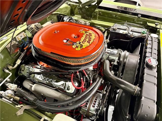 Power is provided by Plymouth’s legendary L-Code 440 CI “Super Commando" V-8 engine, factory-rated at 375 horsepower and 490 pounds-feet of pavement-melting torque. Induction is via Plymouth’s functional Air Grabber cold-air intake system, including the large, high-flow oval “Coyote Duster" air cleaner assembly. Factory exhaust manifolds feed the full-length dual exhaust system with factory chrome tips. Supporting items include an aluminum radiator and recovery tank, polished alternator, transmission cooler, and battery cut-off. A Chrysler A-727 Torqueflite 3-speed automatic transmission and 4.10:1 Dana 60 rear end deliver the power to a great-looking set of chrome and black Magnum 500 wheels mounting a set of Redline radial tires. Power front disc/rear drum brakes and power-assisted steering ensure a comfortable drive. The restored trunk includes a factory-correct plaid vinyl floor mat and houses a mounted spare Magnum 500 wheel/radial tire.