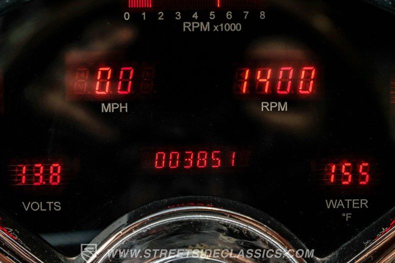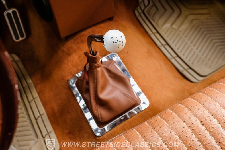 Step inside and experience a custom interior that redefines comfort and style. The bench seats are upholstered in a distinctive combination of brown ostrich and vinyl, complemented by matching door panels and headliner. The wood grain-style NRG steering wheel on a chrome tilt column adds a touch of elegance, while Dakota digital gauges with red accent lighting keep you informed. Modern conveniences include a retro AM/FM radio with AUX input, a powerful vintage air conditioning system, and convenient cruise control, all designed to enhance your driving pleasure.